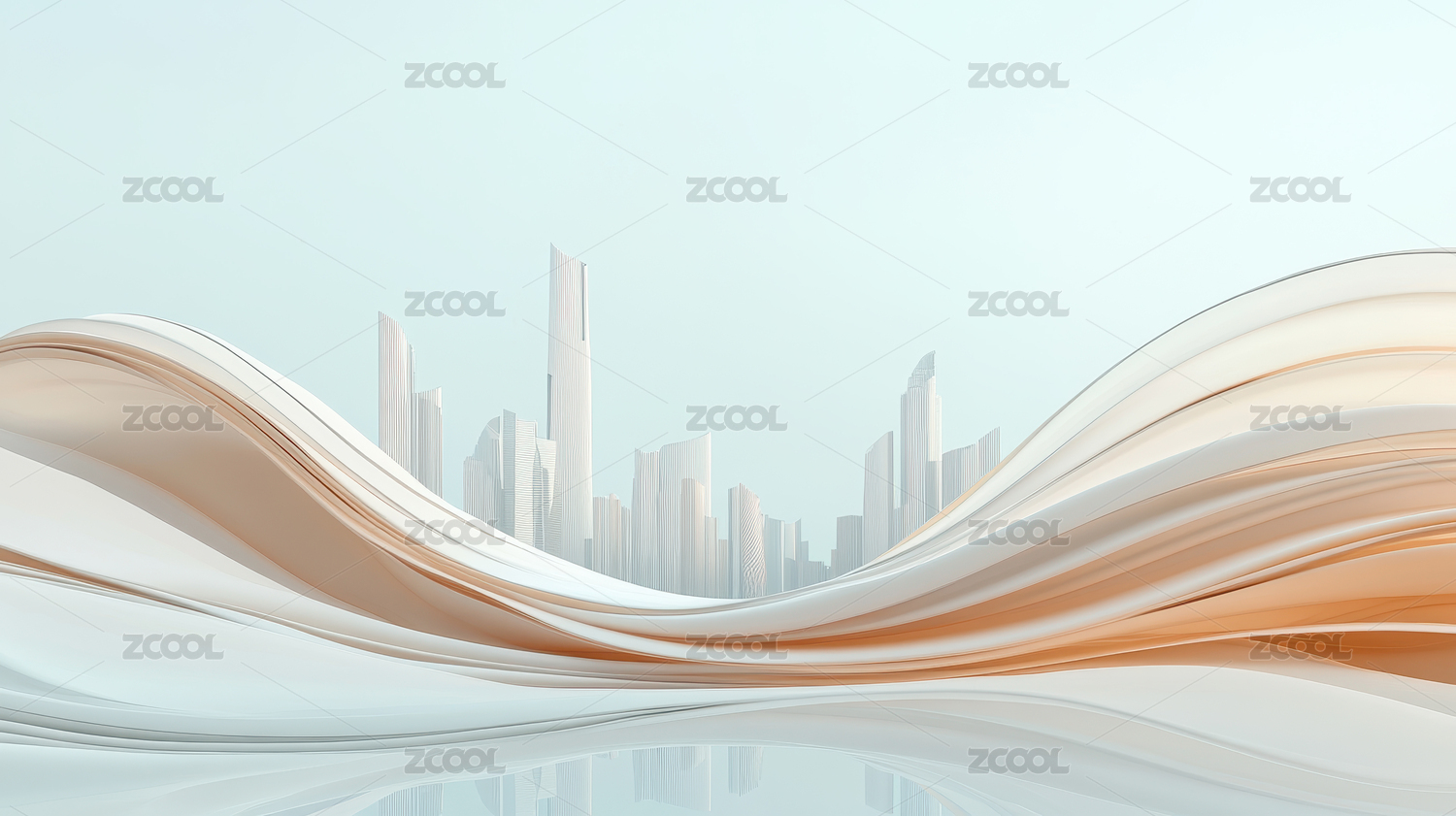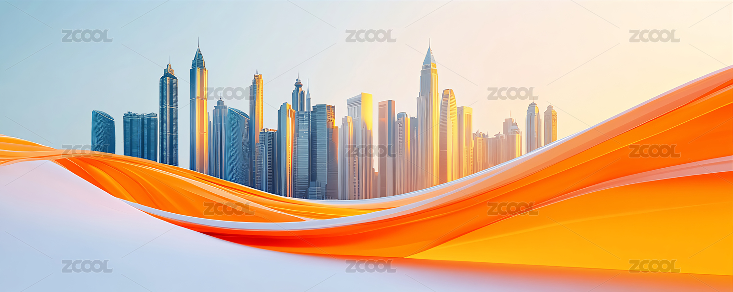 简约暖色背景波浪中的城市轮廓