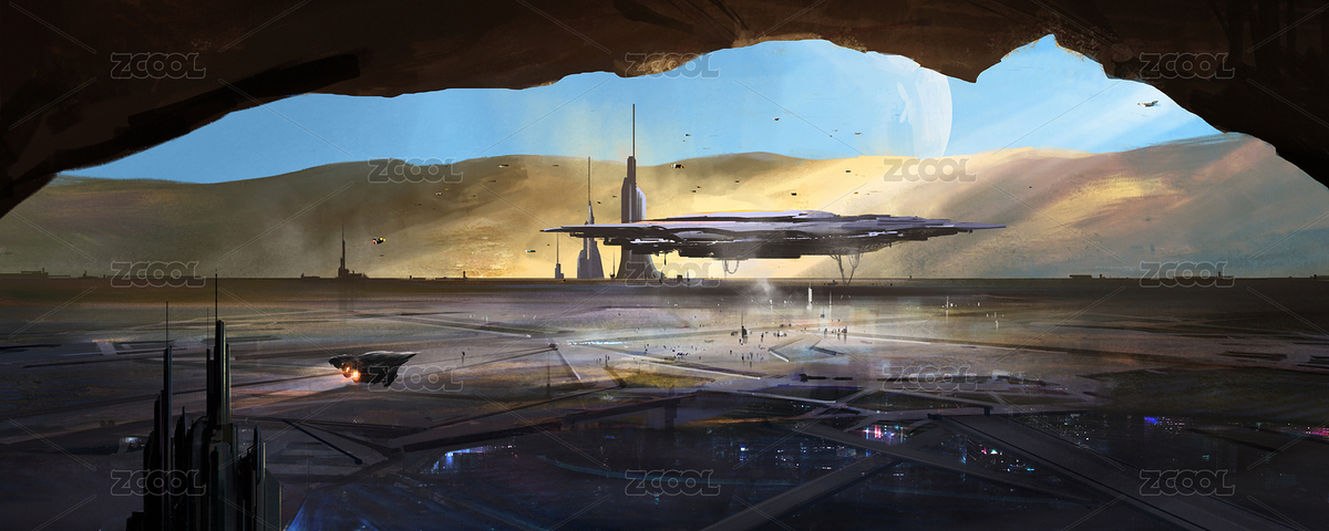 外星球,地下城,城市,隐蔽,科幻,未来,飞船,飞机,广场,洞穴
