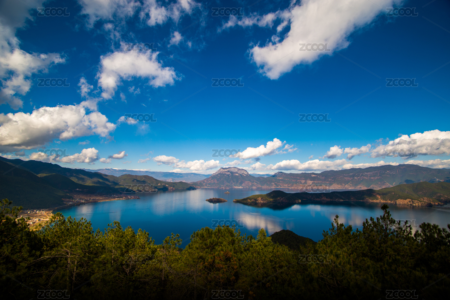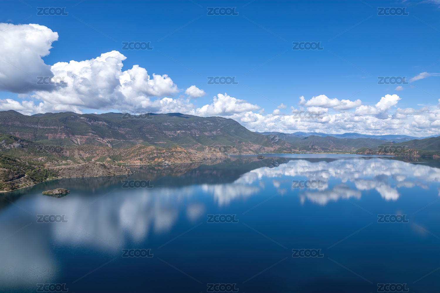 云南丽江泸沽湖蓝天白云海面