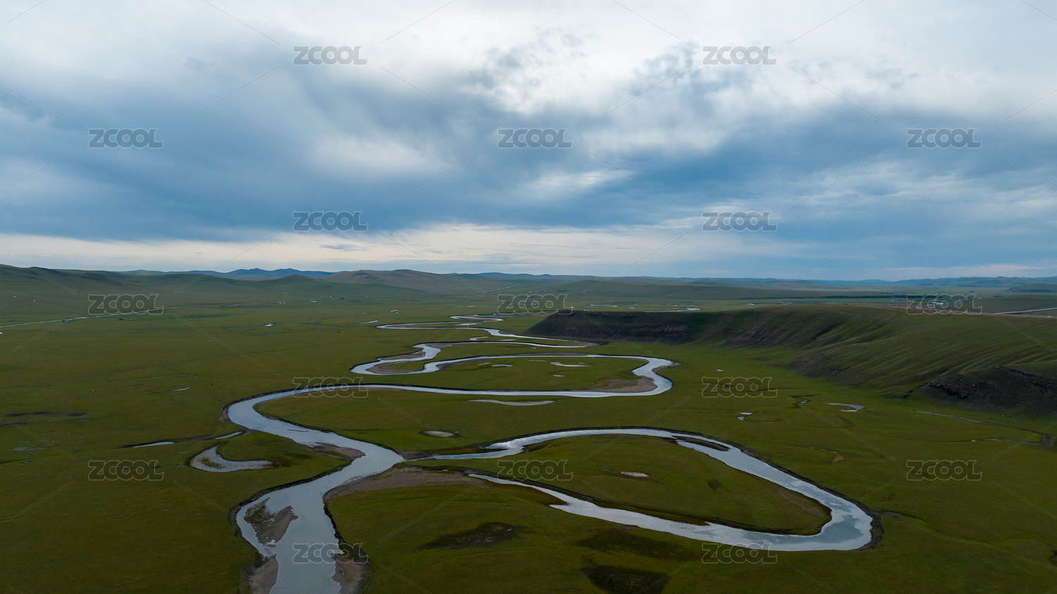 呼伦贝尔大草原蜿蜒河流与绚丽晚