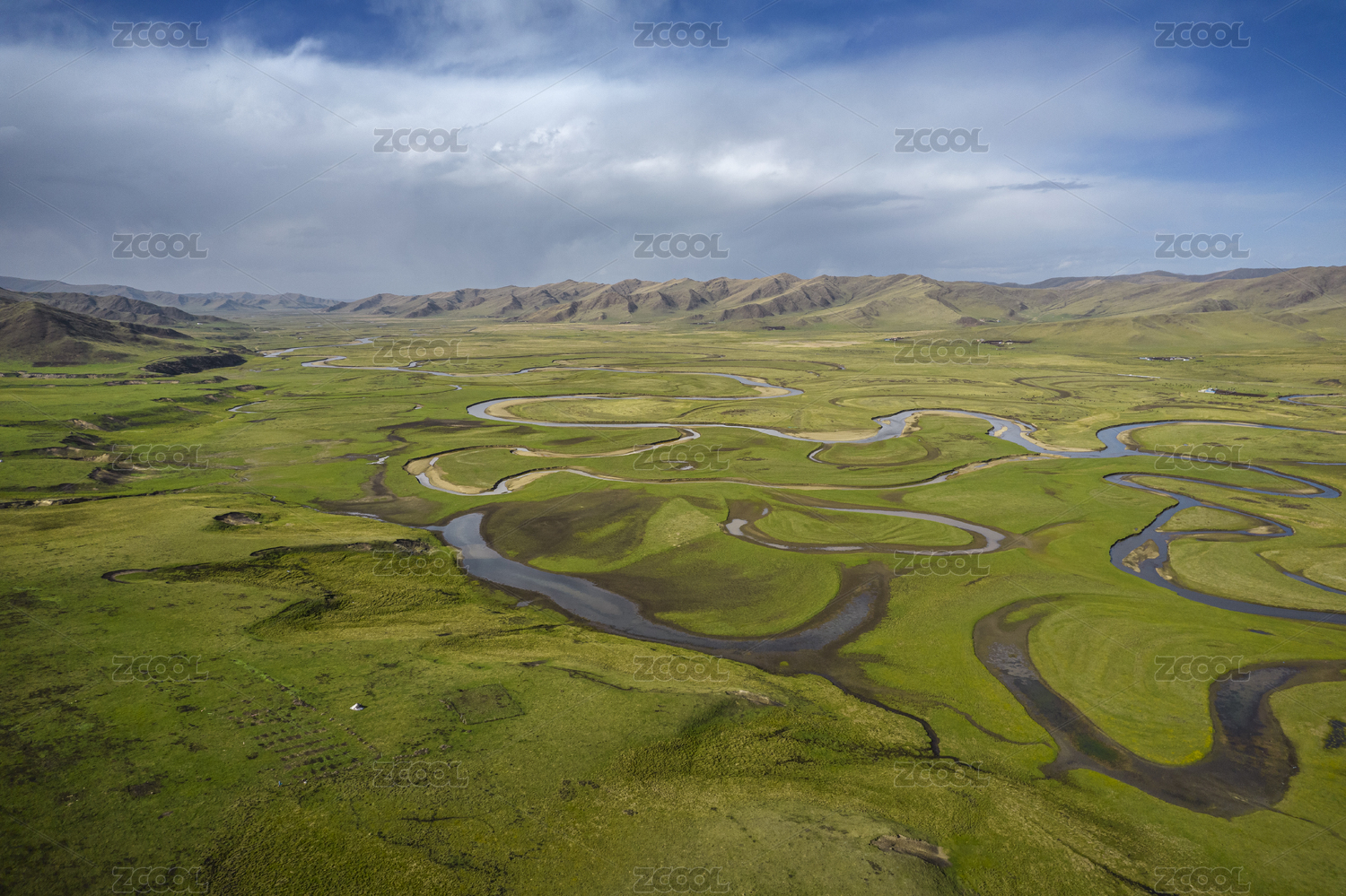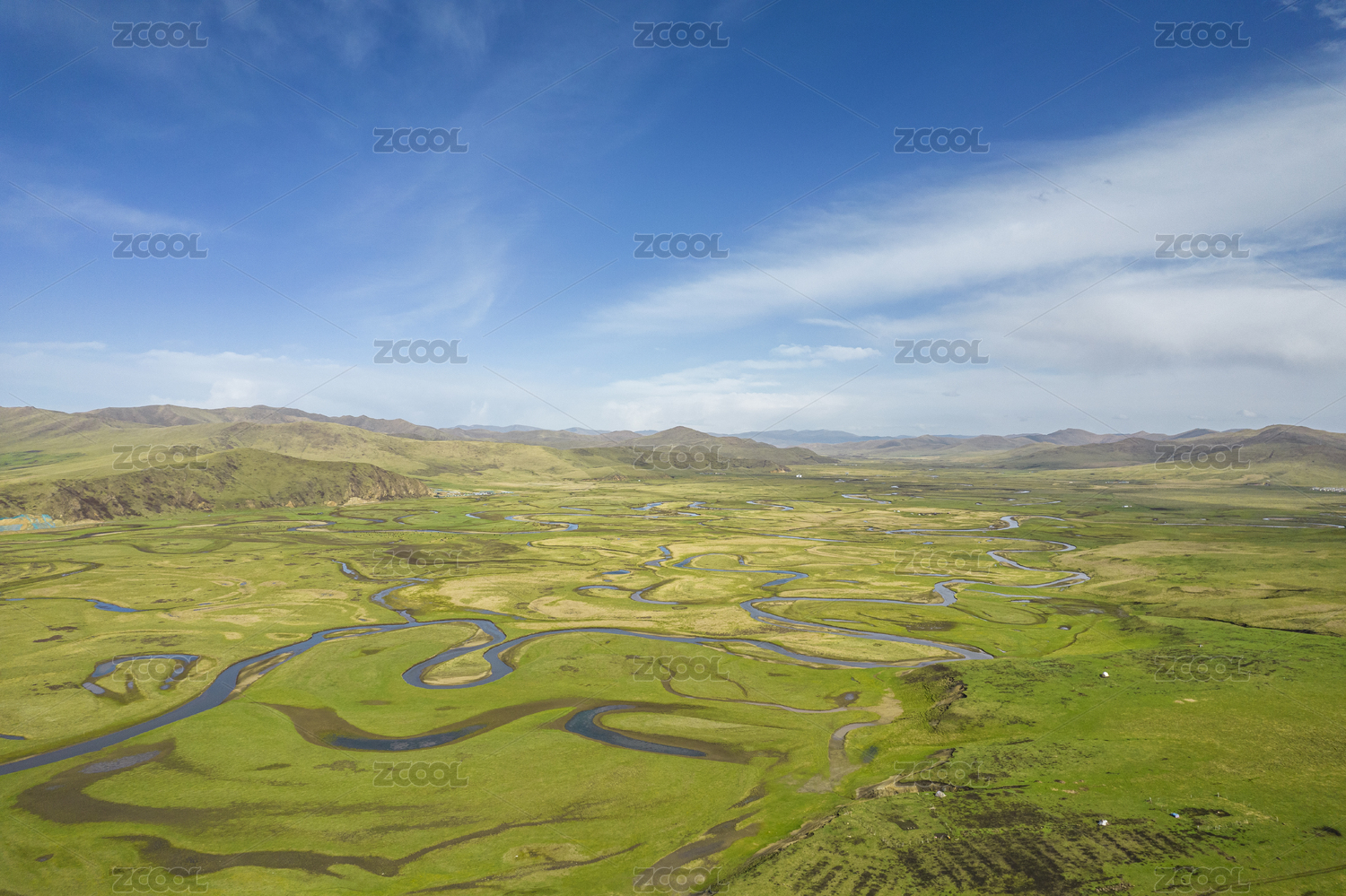甘肃甘南玛曲阿万仓湿地蜿蜒河道草原航拍