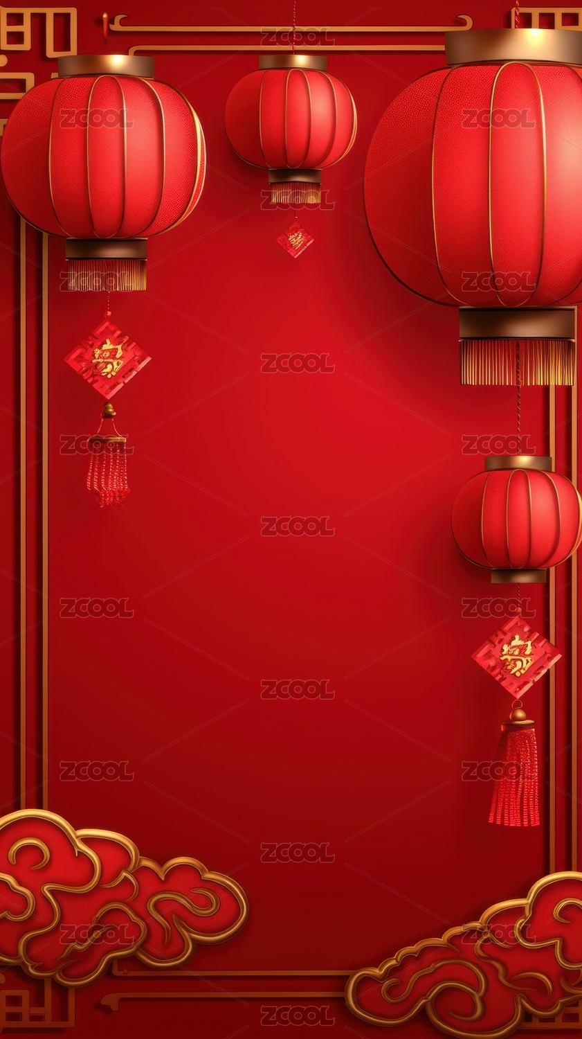 红色灯笼与祥云装饰的节日背景