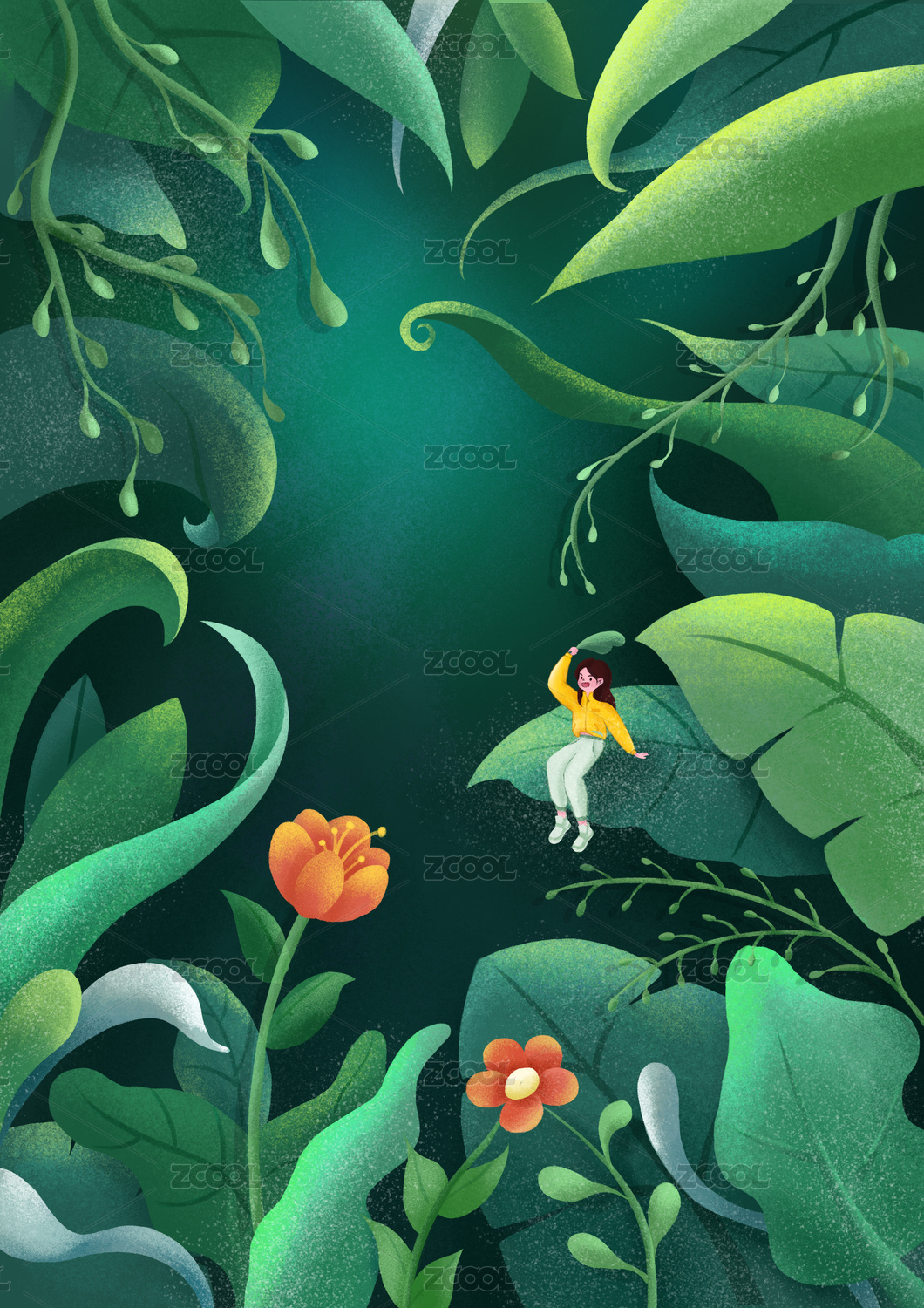 夏天绿色植物小场景