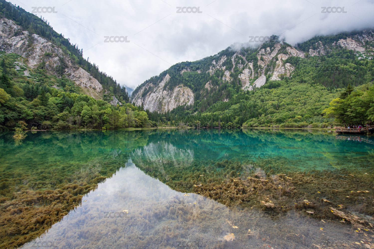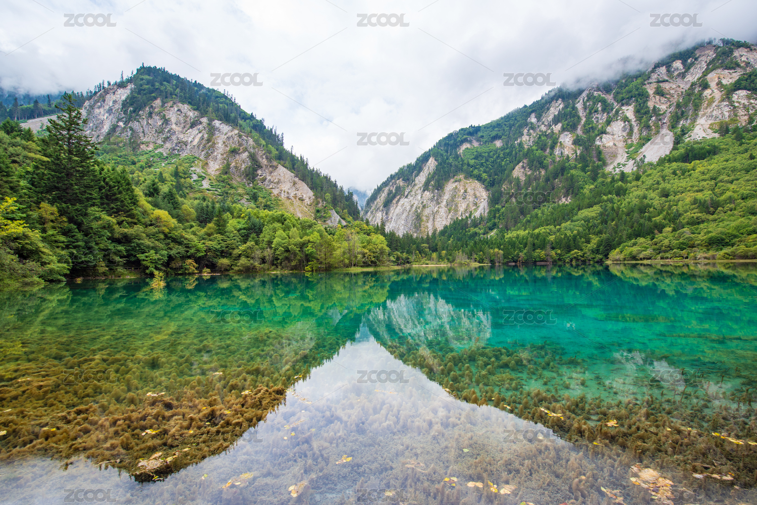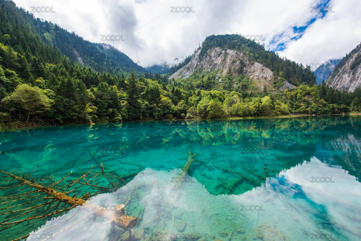 九寨沟卧龙海蓝色清澈湖泊美景