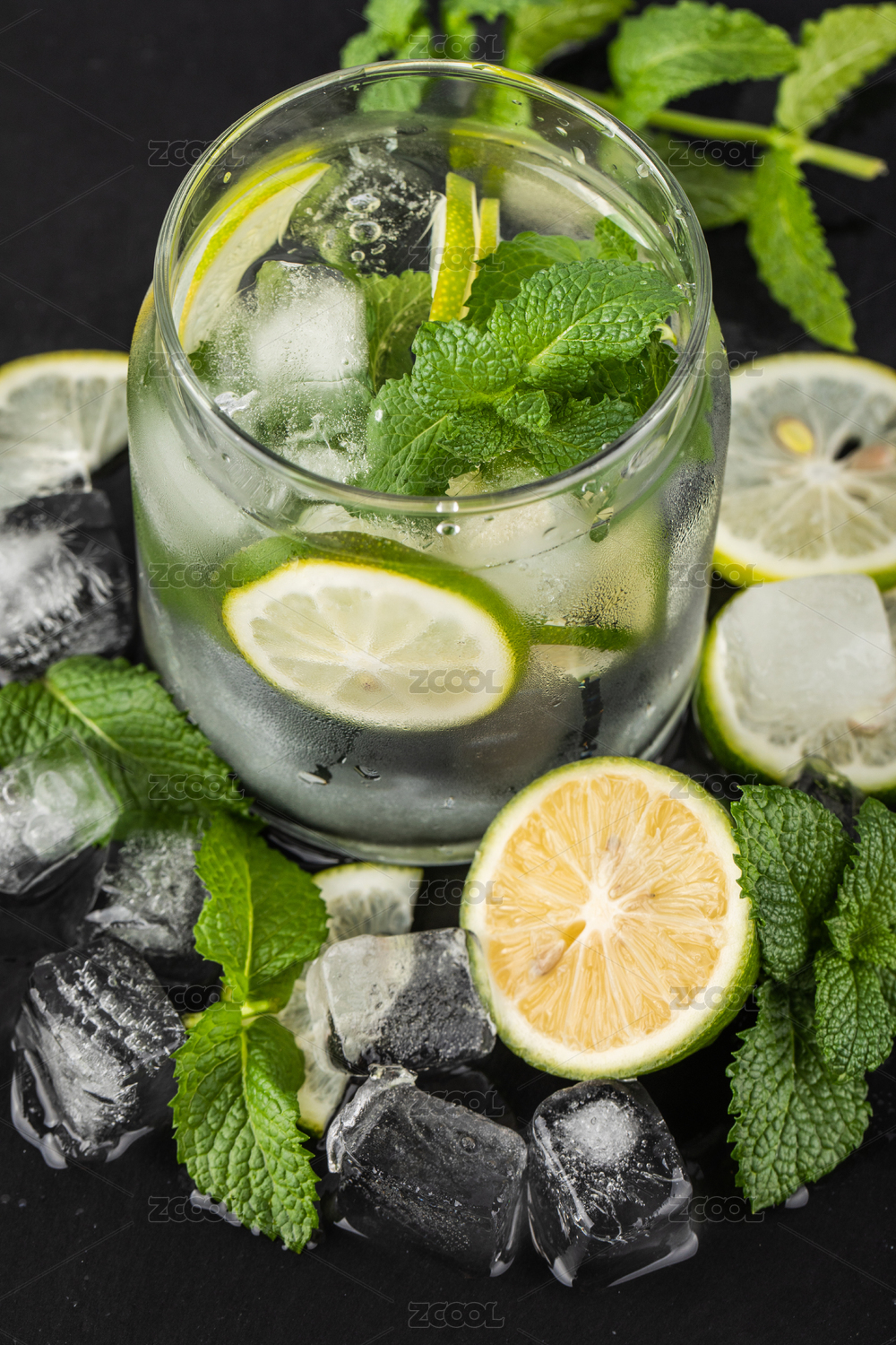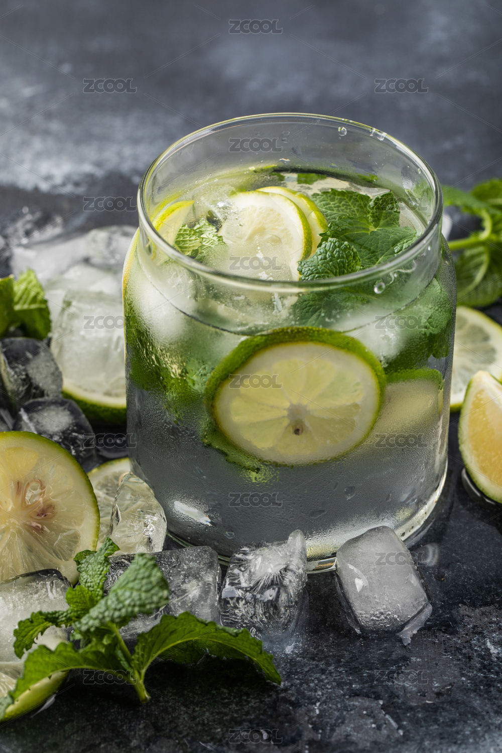青柠檬,水果,冰块,薄荷叶,切片,夏日,饮料,食材,冰镇,酷爽