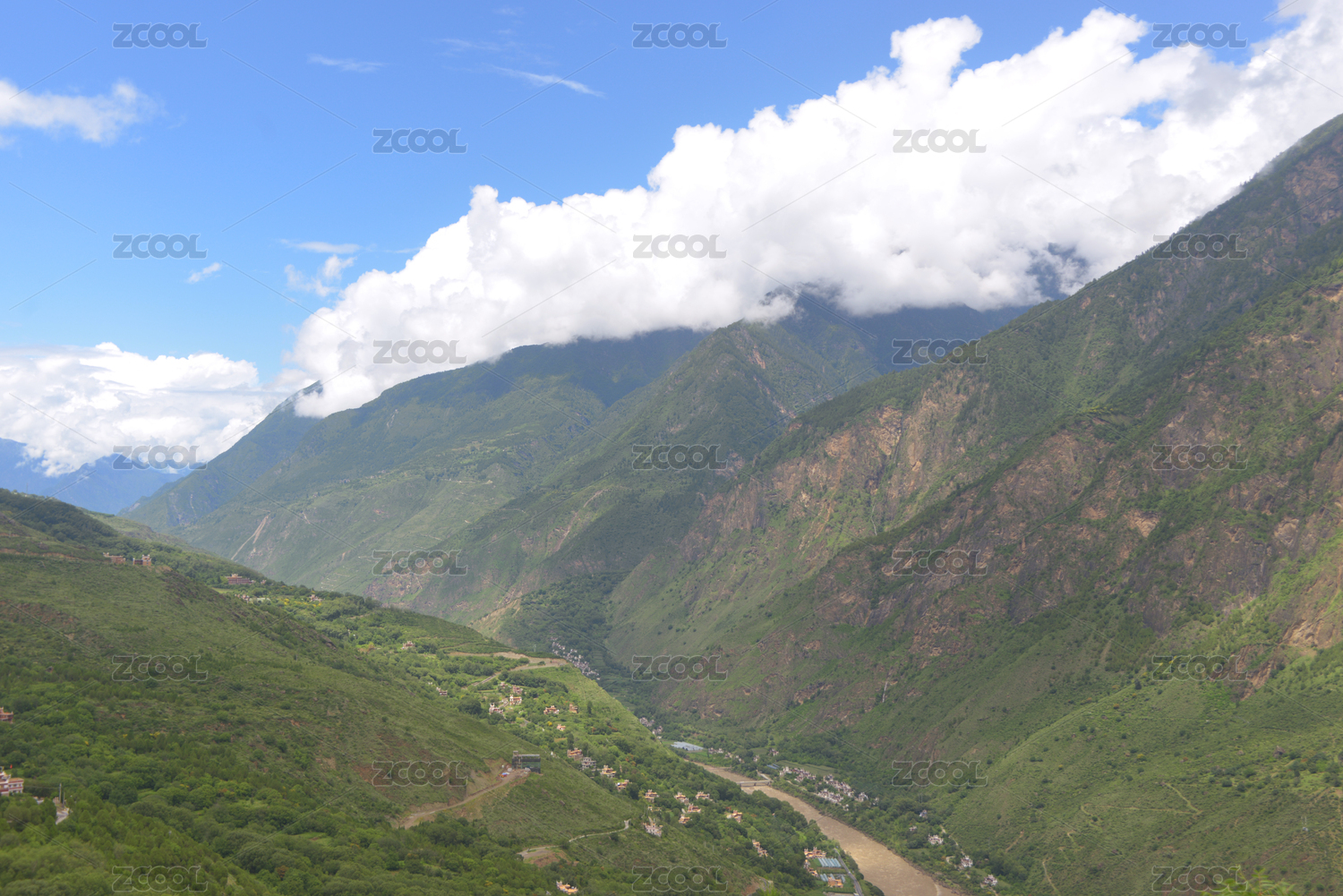 丹巴,甲居藏寨,大金川,河谷,河流,江河,流域,大山,群山,大金川河