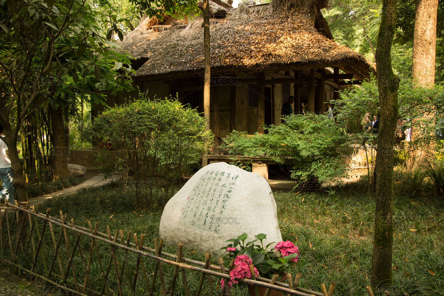 成都杜甫草堂里篱笆内杜甫的草屋
