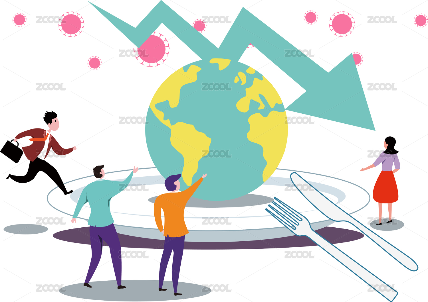 由各种颜色组合的箭头方向,指向职员看向前景和未来
