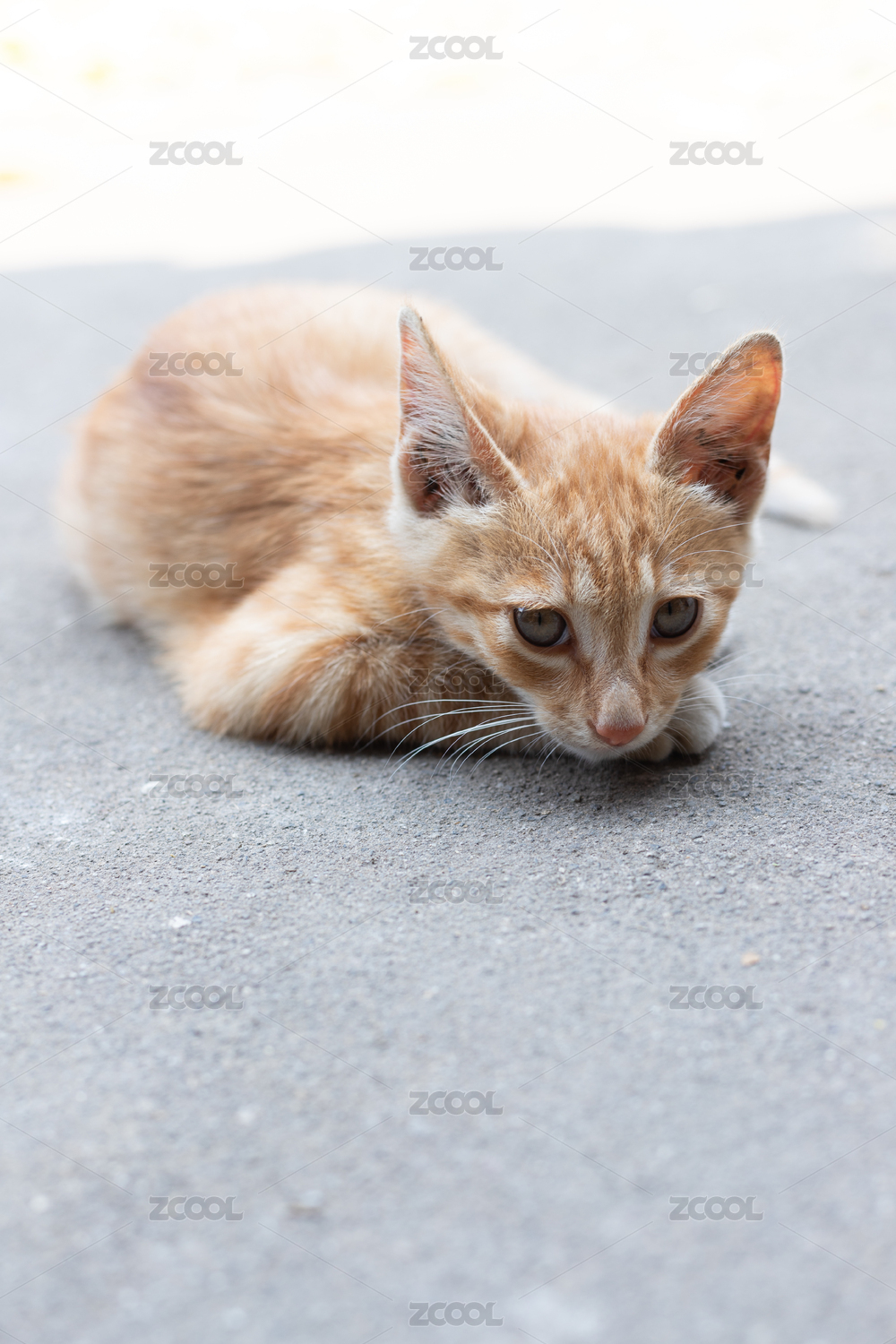 一只趴在台阶上休息的小猫