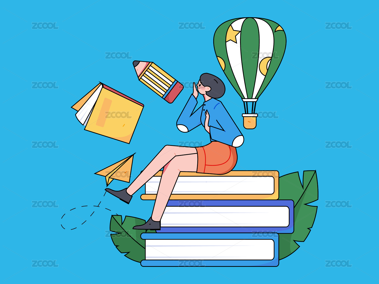 世界读书日阅读人物扁平矢量概念运营手绘插