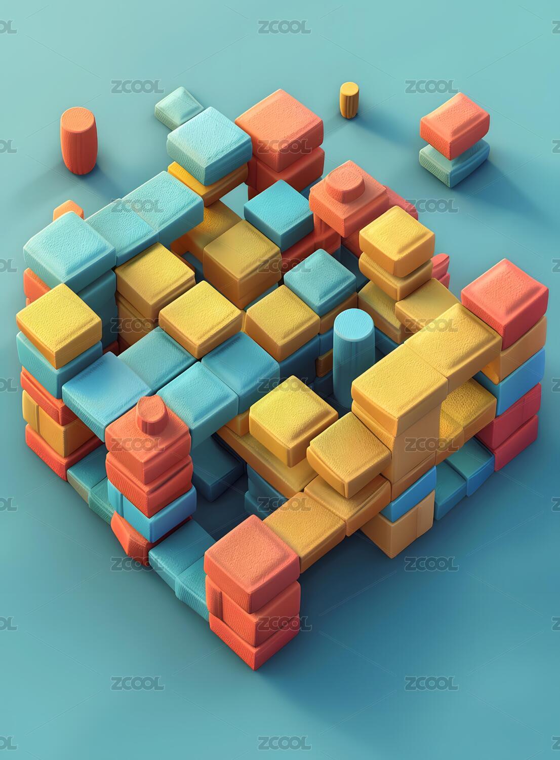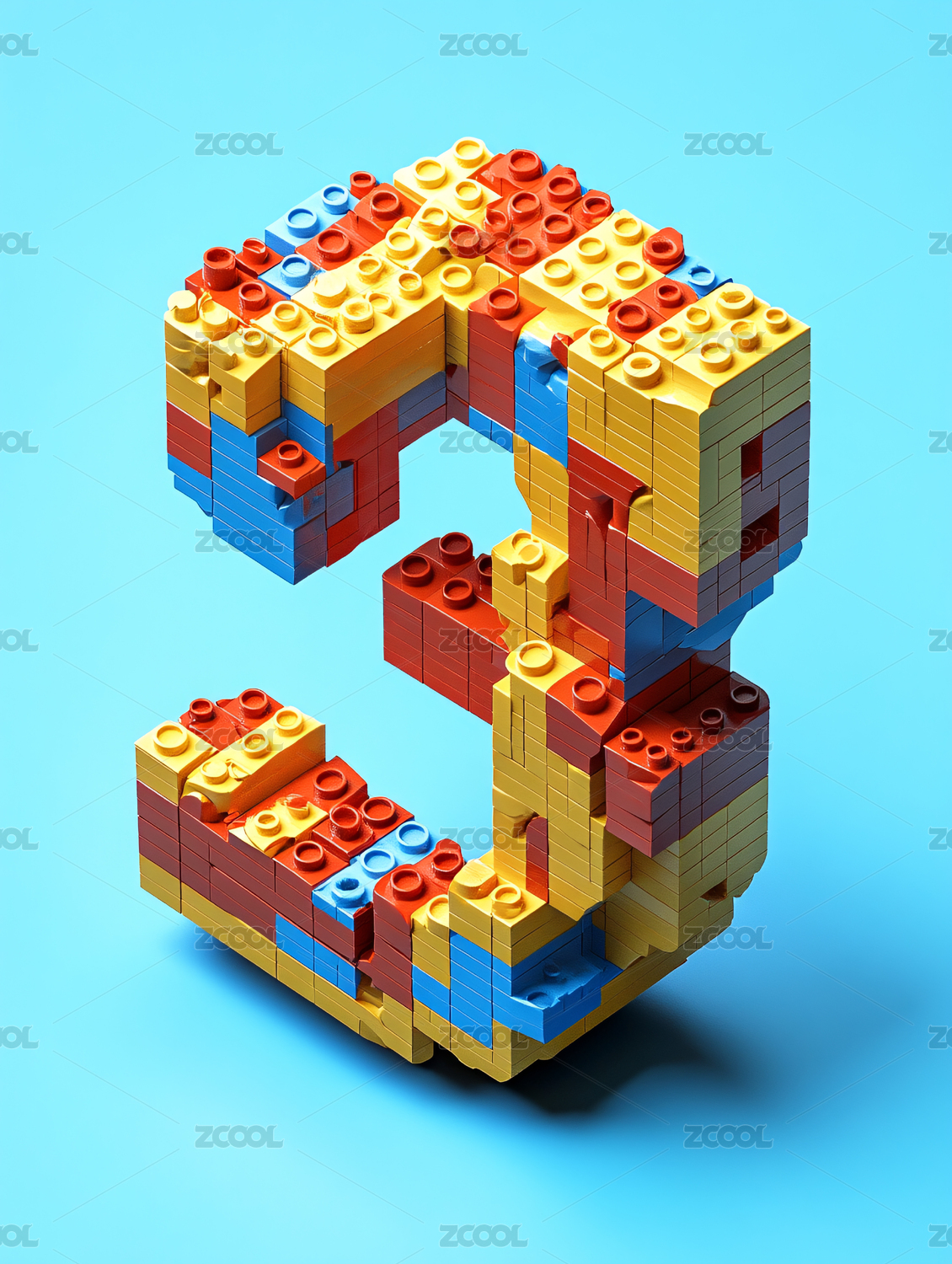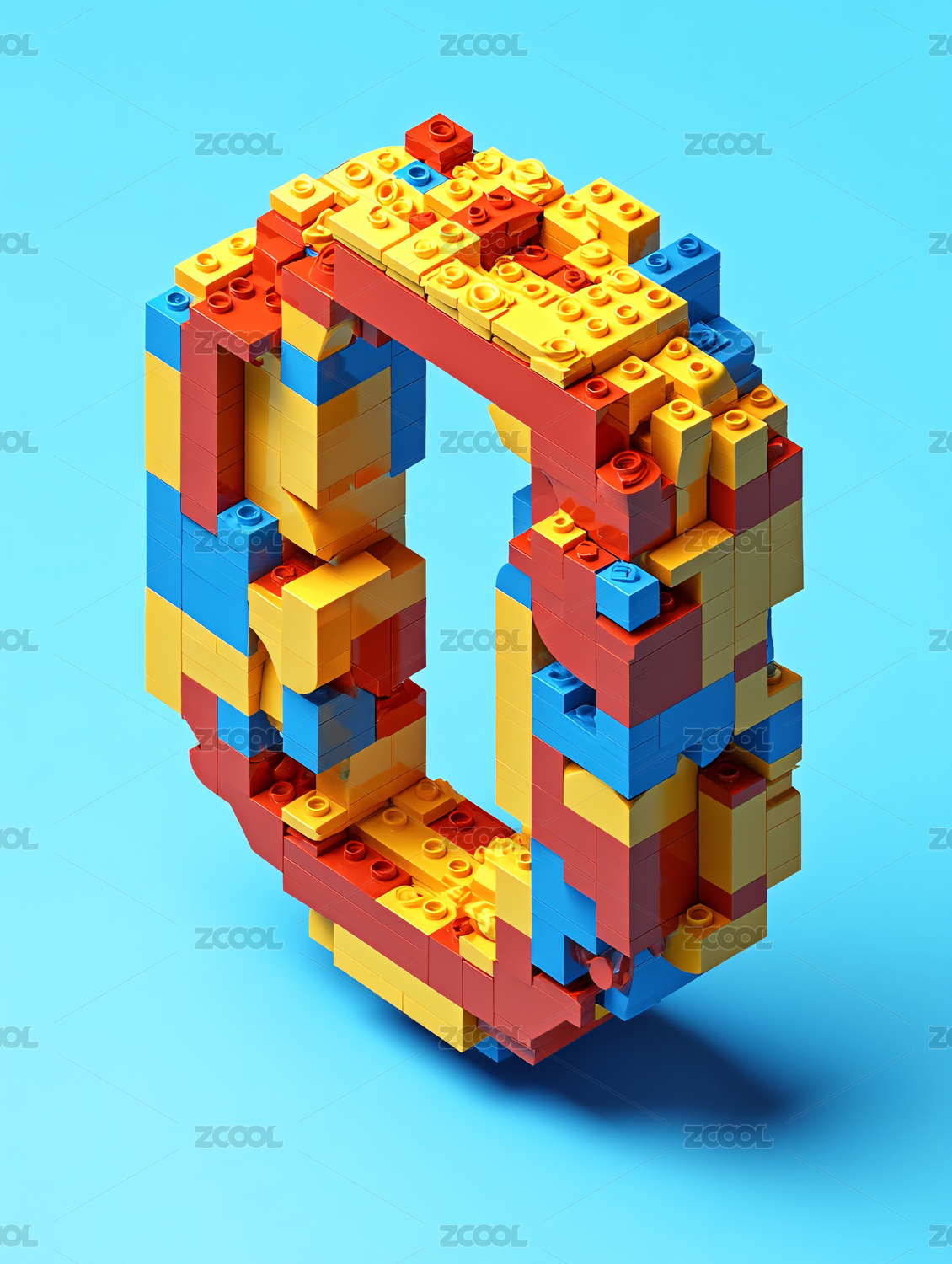 3D,AIGC,立体,数字,数字0,字体,设计,艺术,乐高,积木