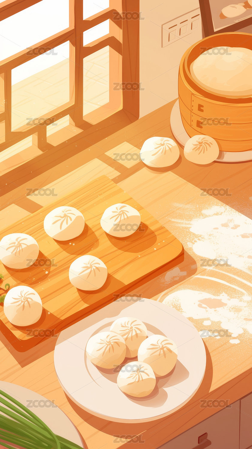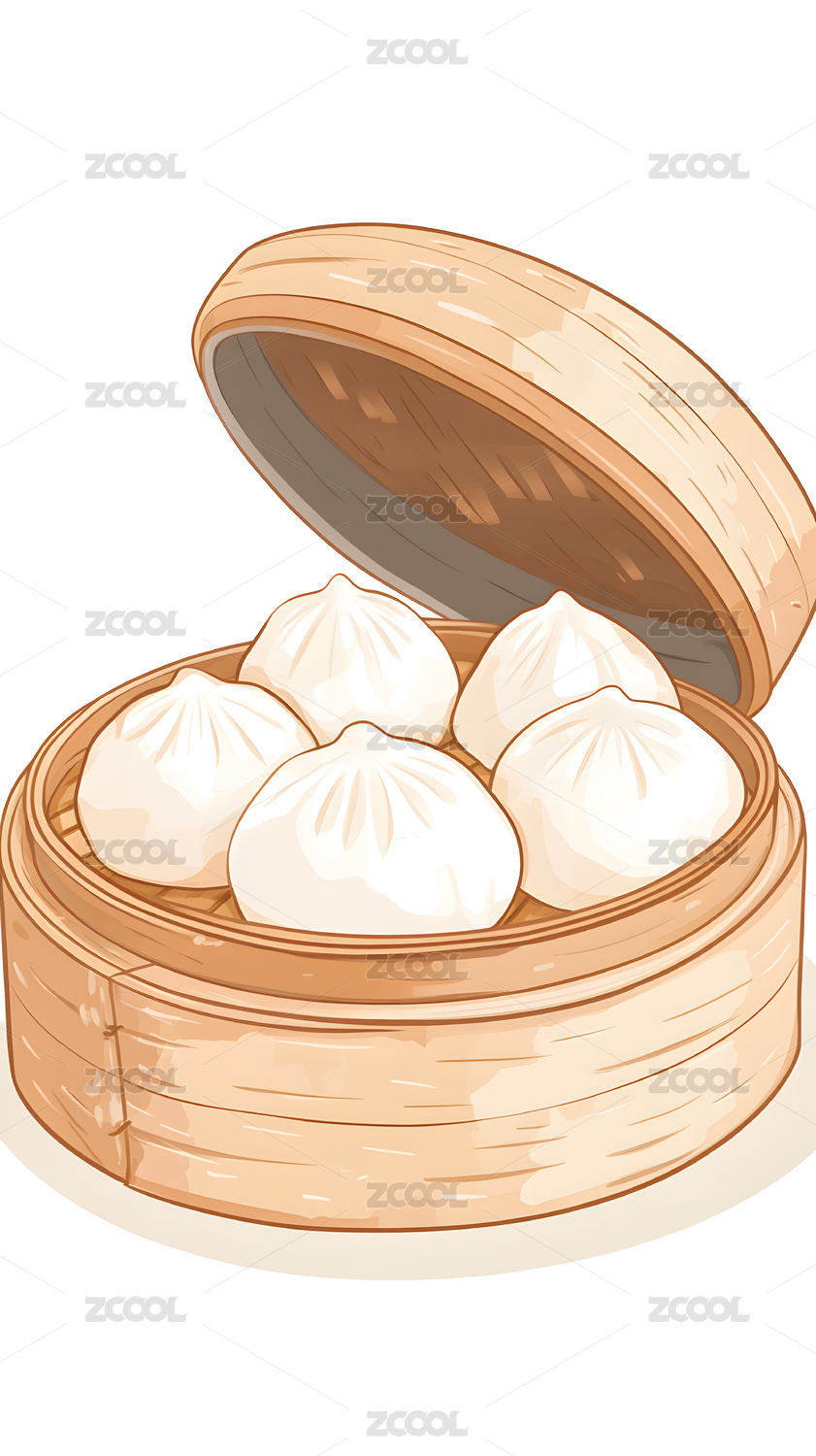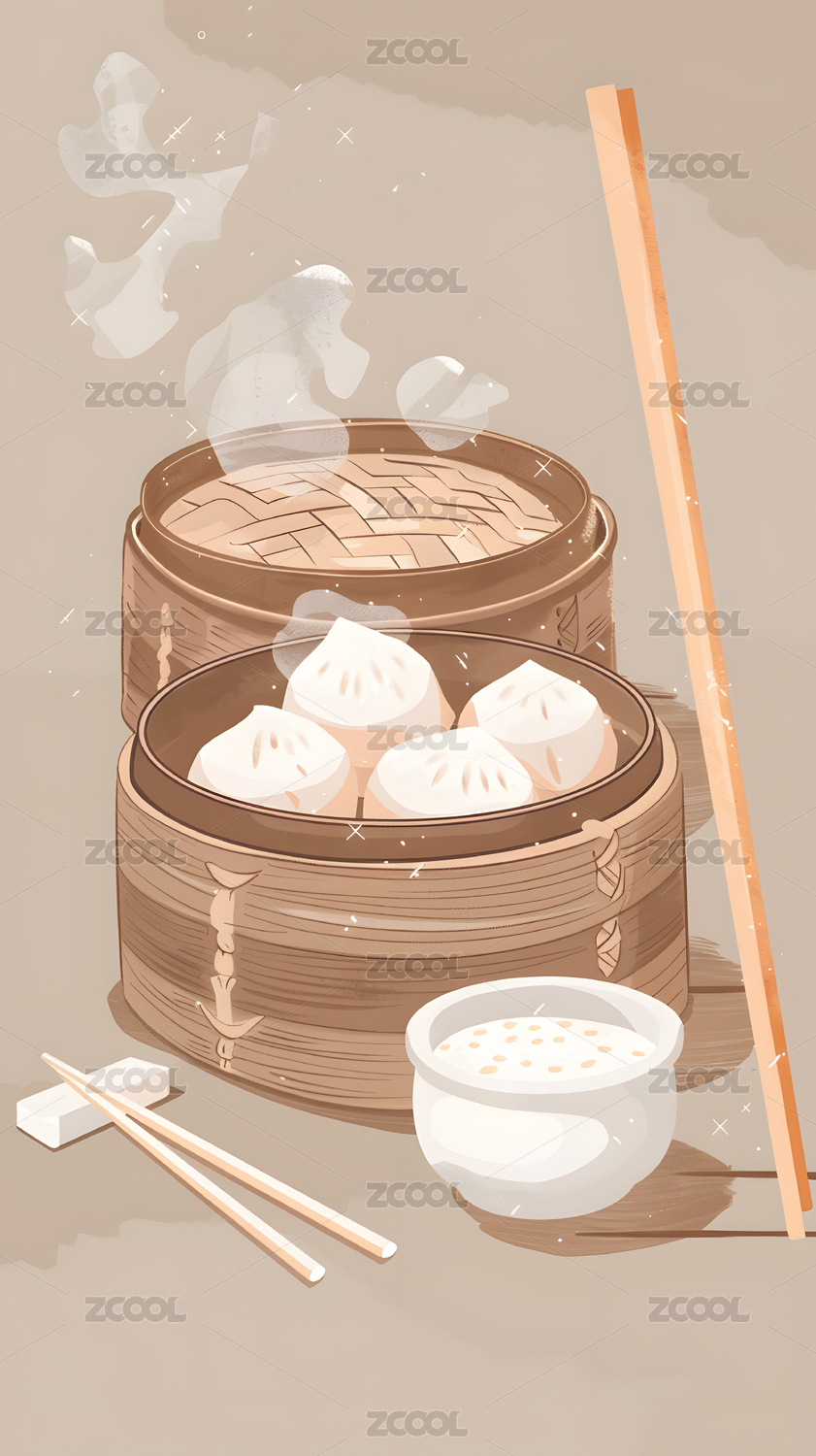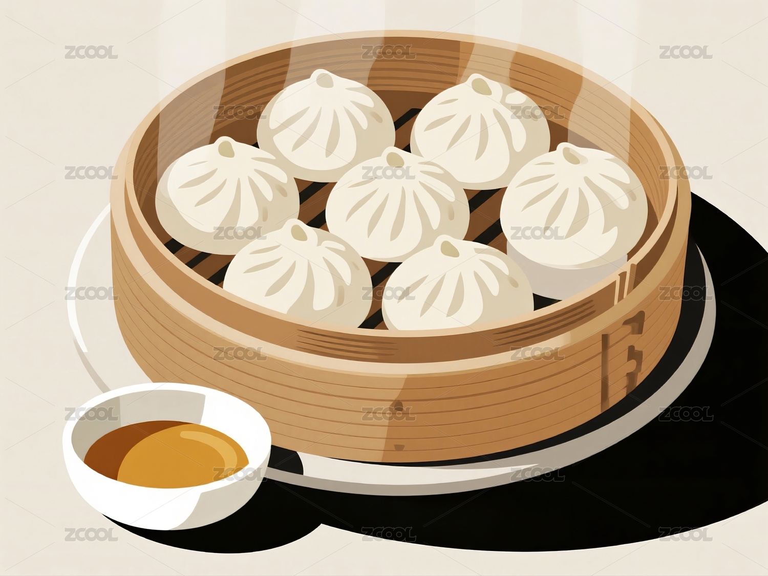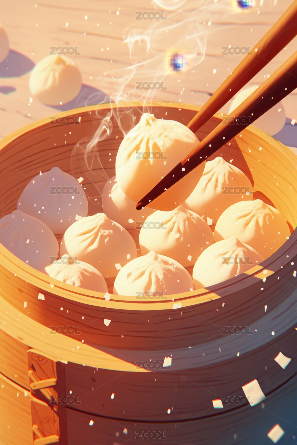 AIGCFG,中国风,水墨,插画,中式风格,国潮风,美食,食物,包子,小笼包