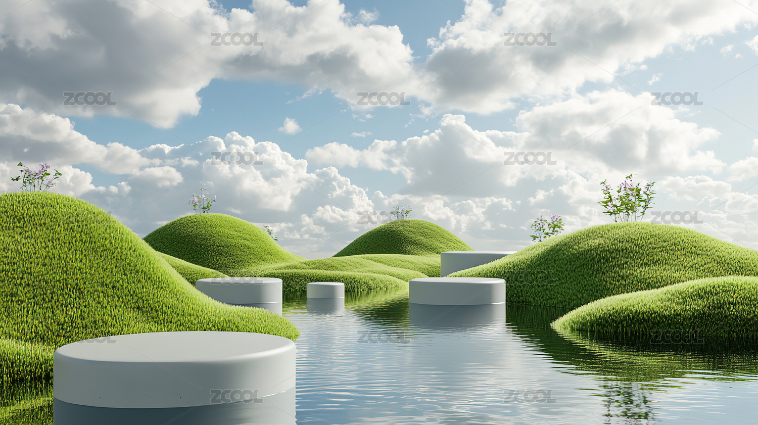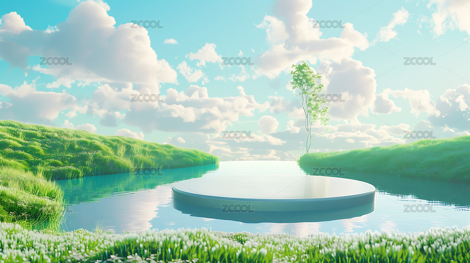 自然,风景,春天,草地,河流,展示台,背景,天空