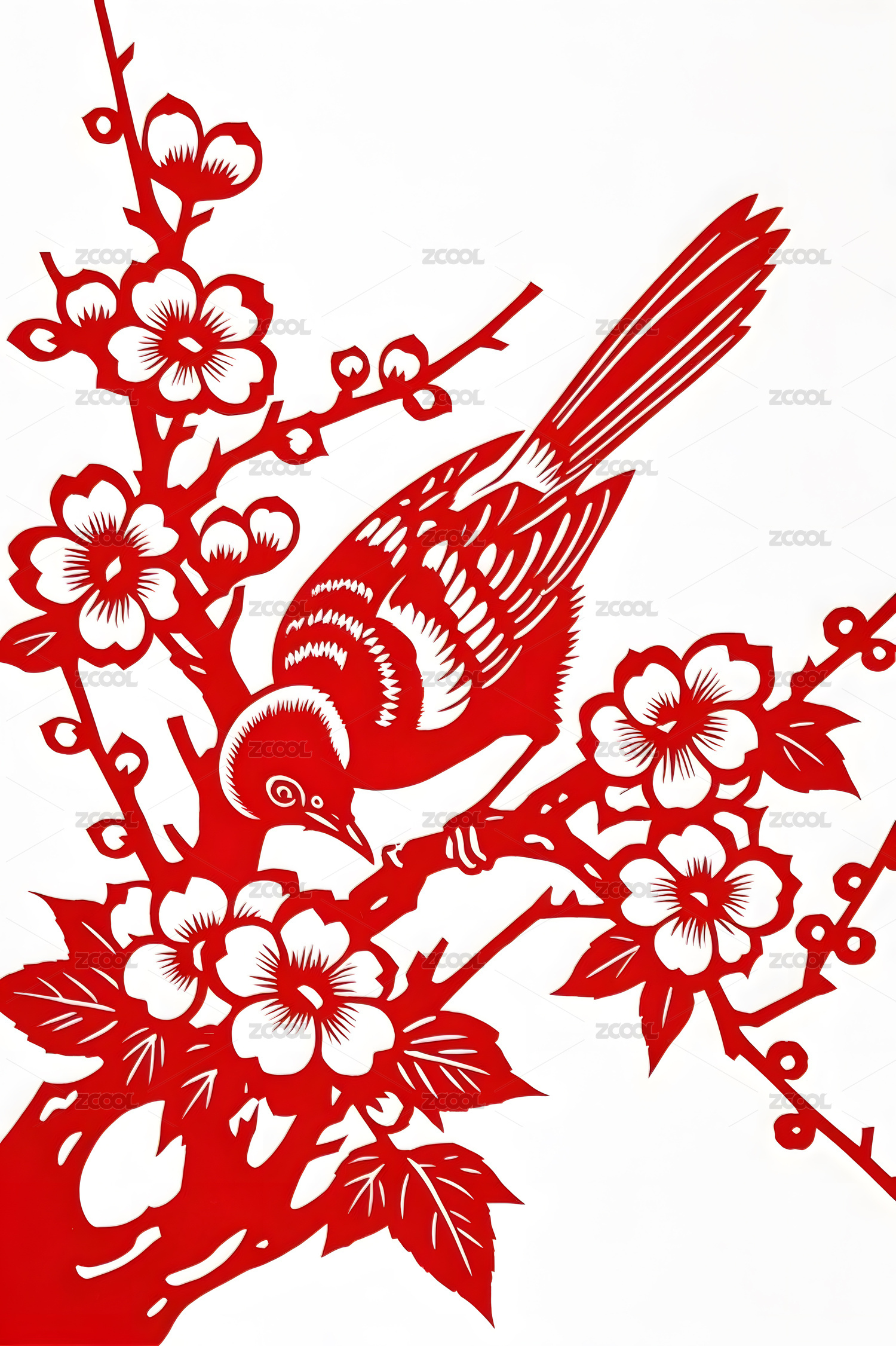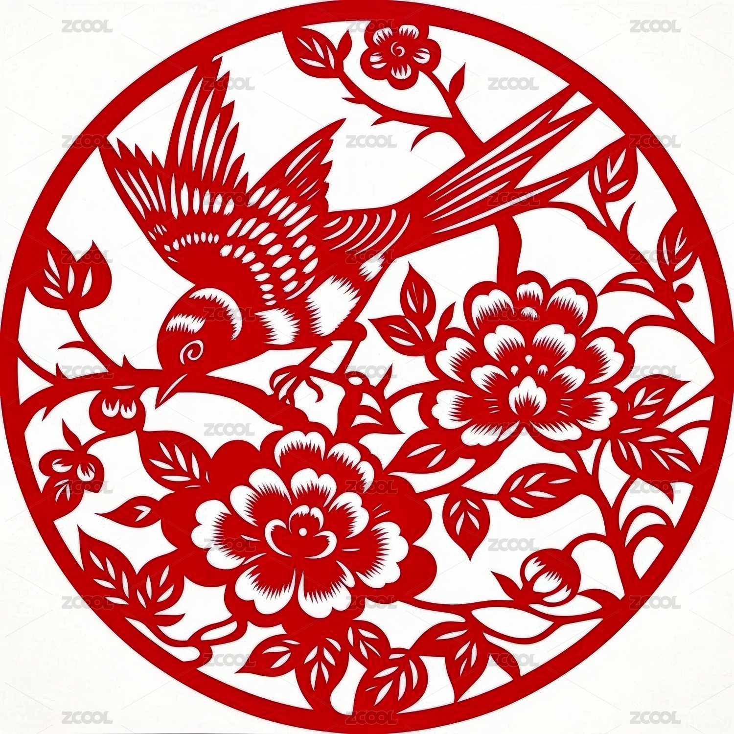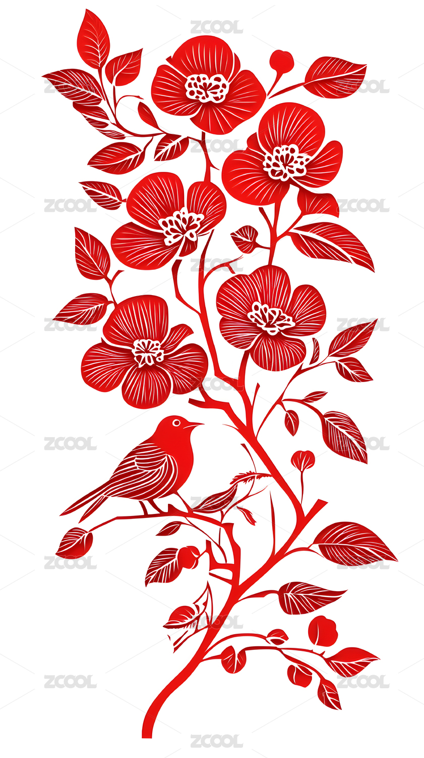 红色喜庆花鸟剪纸