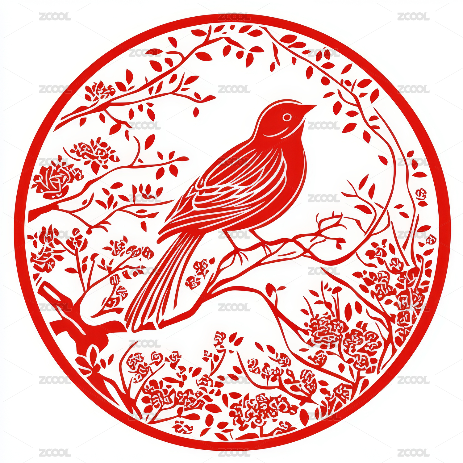 鸟剪纸窗花圆形中国风春节印刷打印