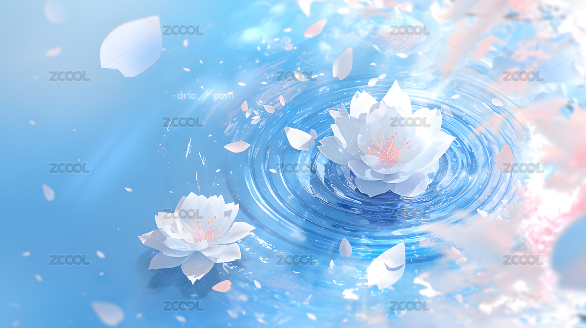 AIGCFG02,秋天,水,落叶,叶子,卡通,插画,秋叶,风景