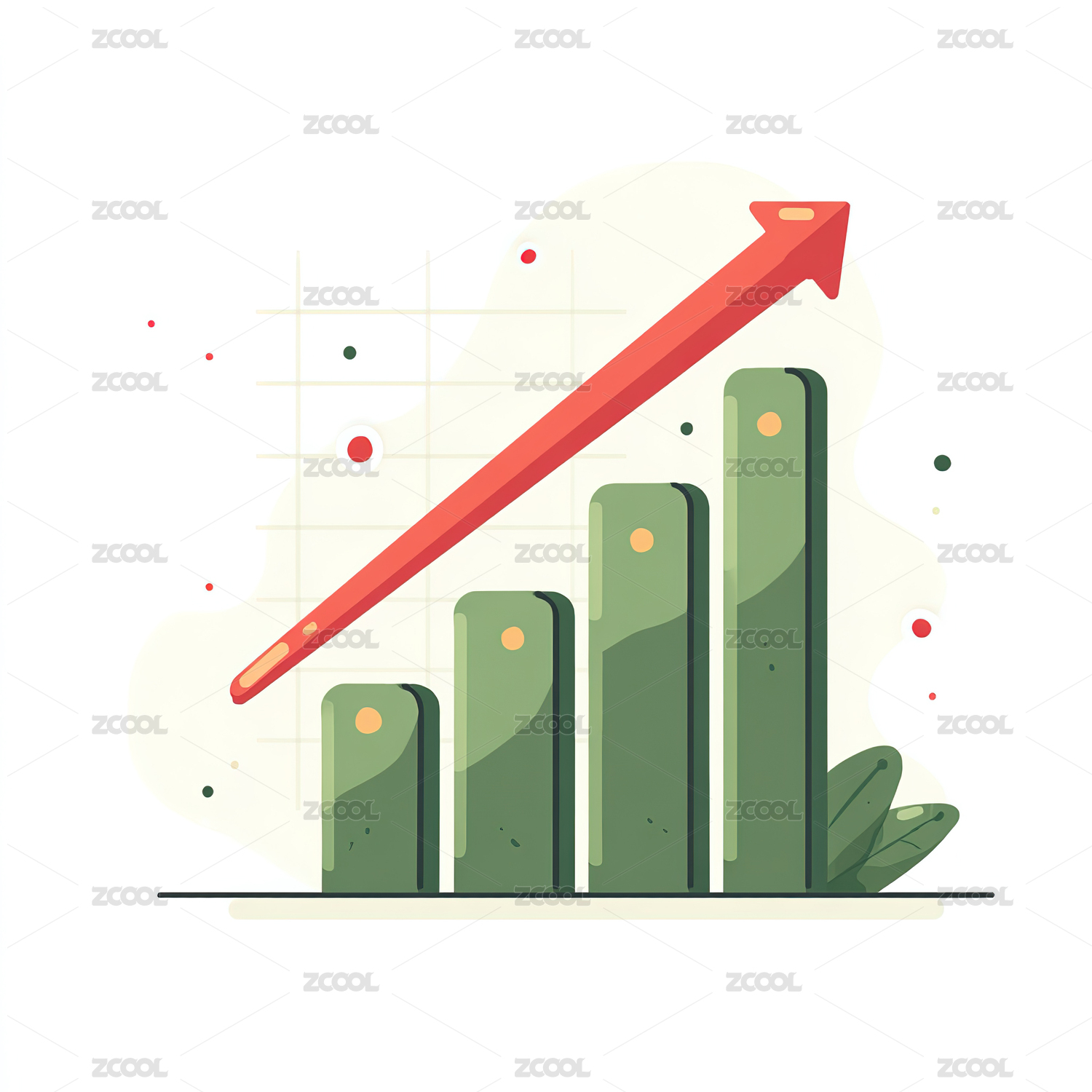 上升趋势的柱状图和上升增长的箭头