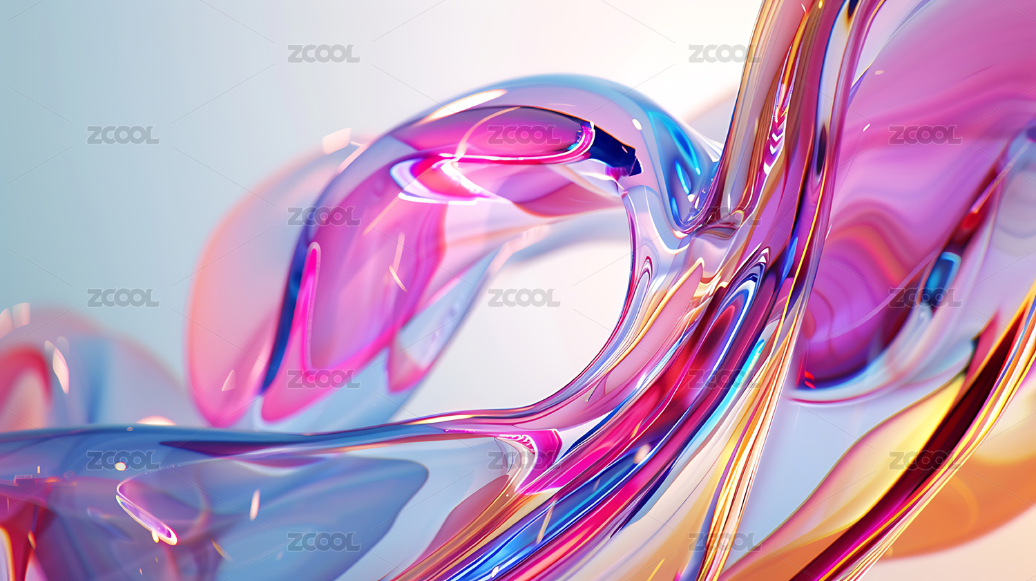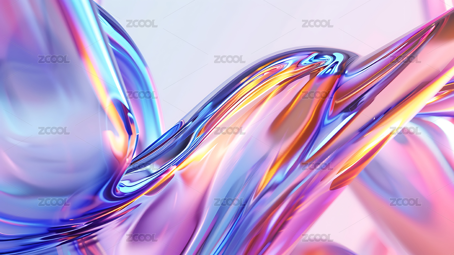 多彩渐变的流动液体,玻璃质感,抽象背景