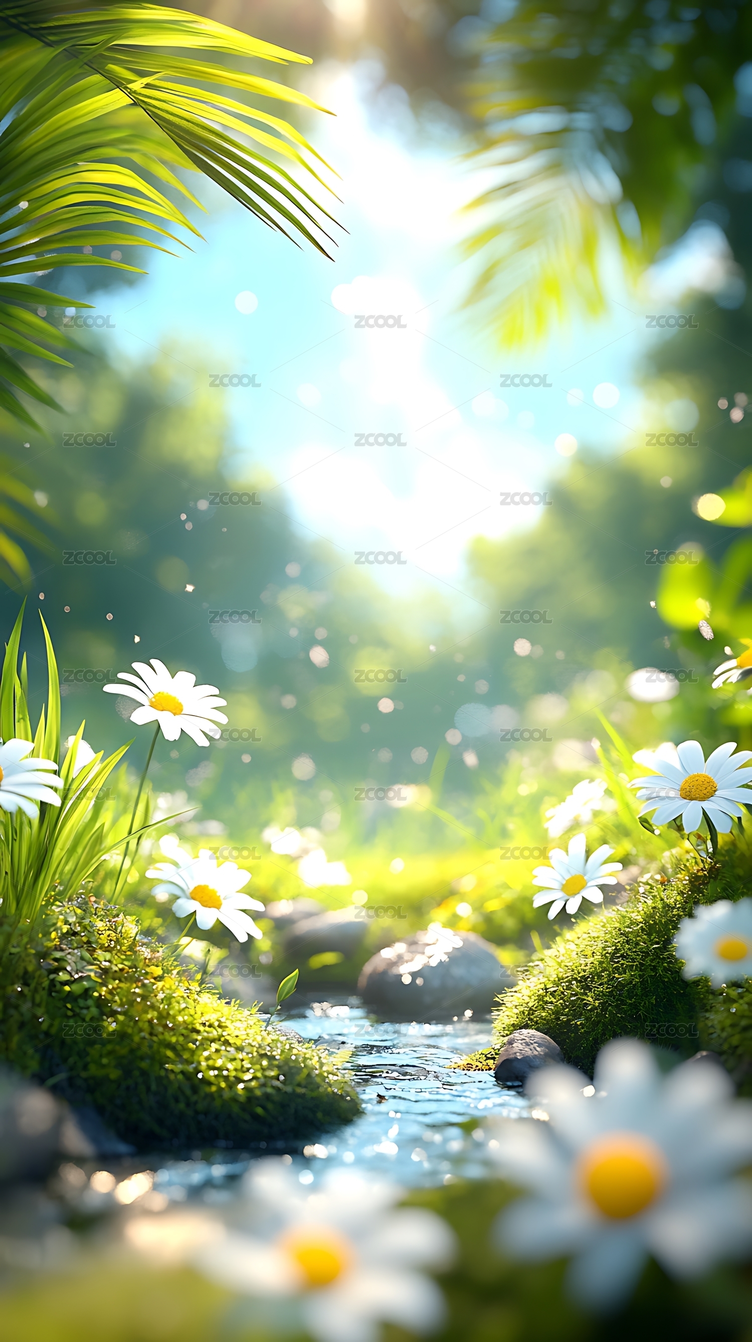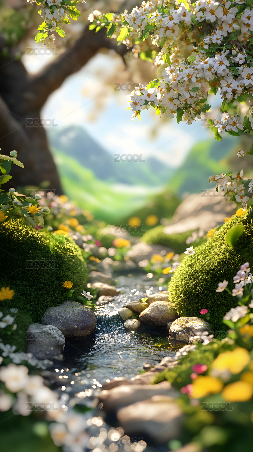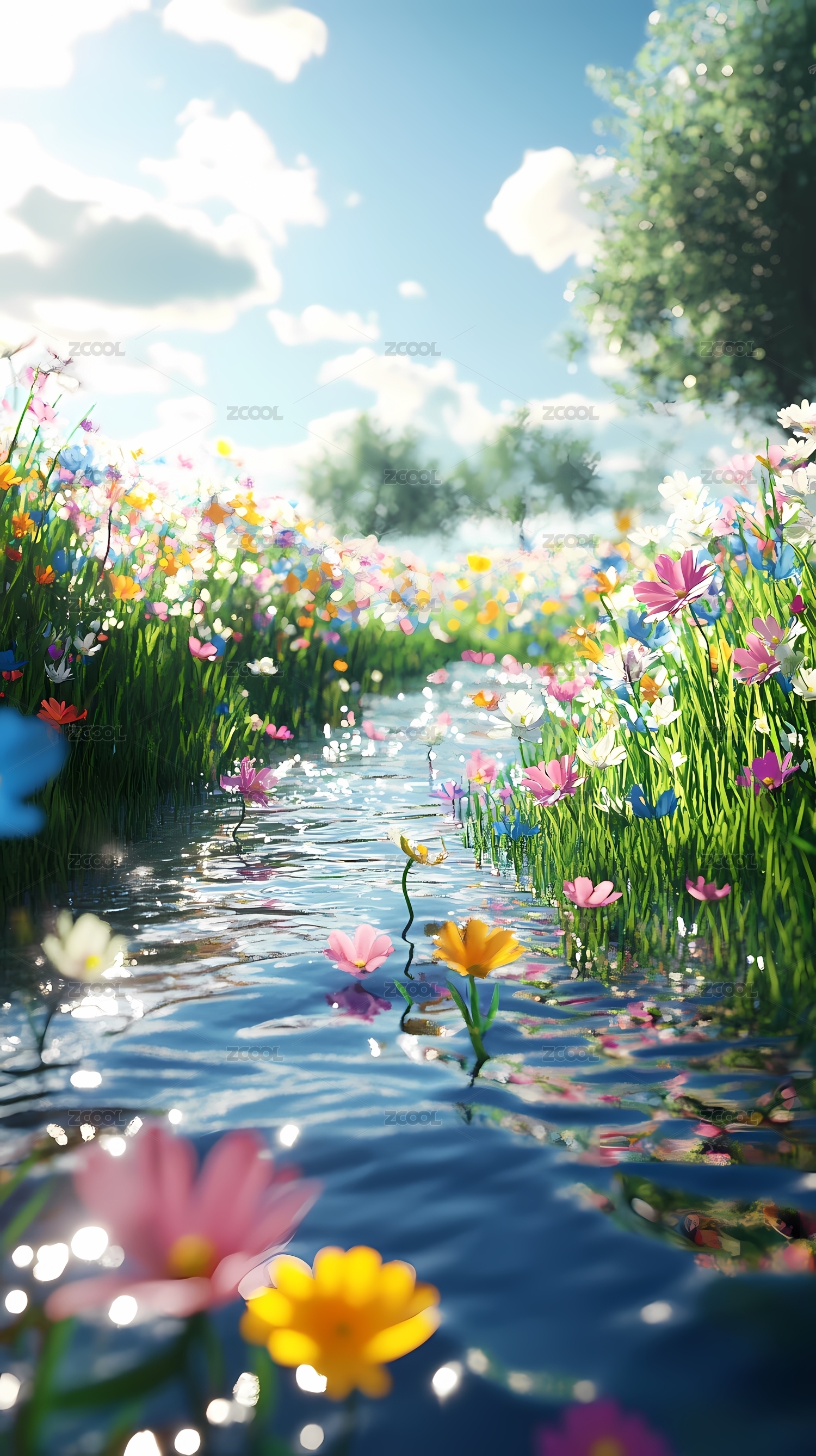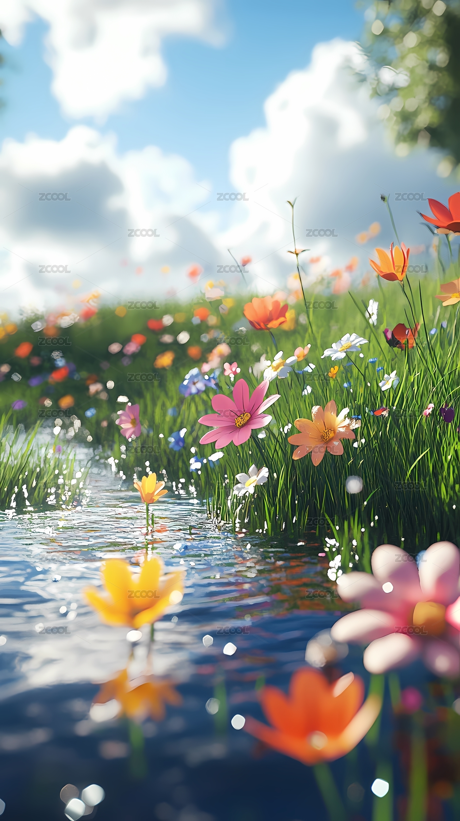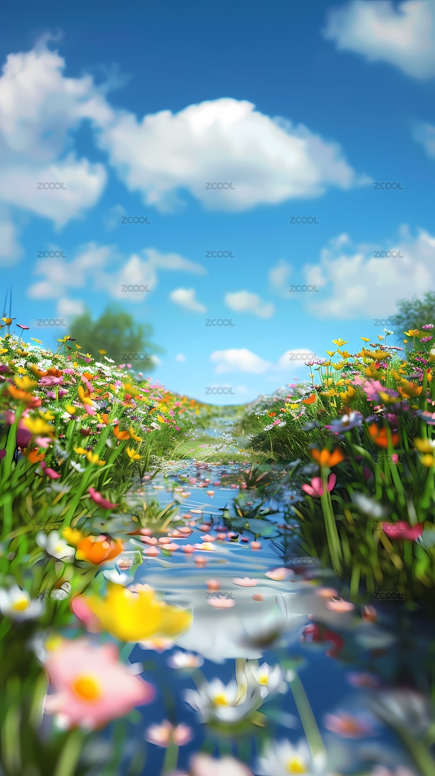 春天,夏天,风景,立体,天空,草地,花,背景,壁纸