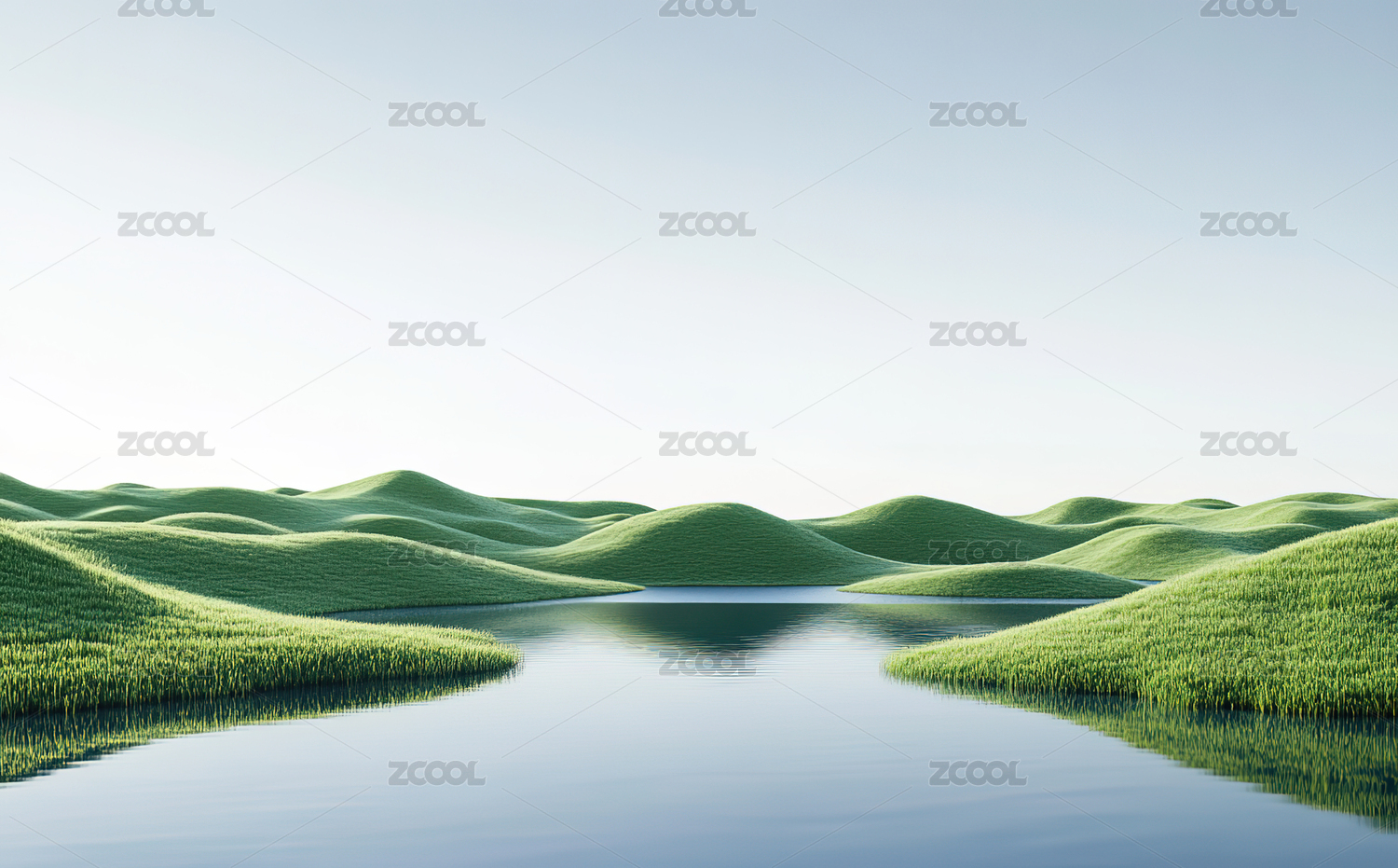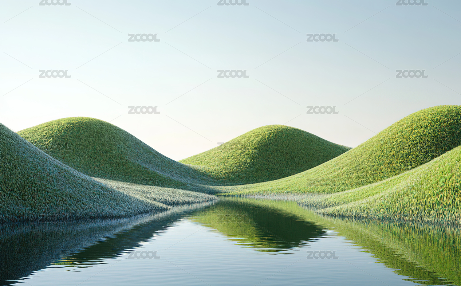 绿色的草地和倒影
