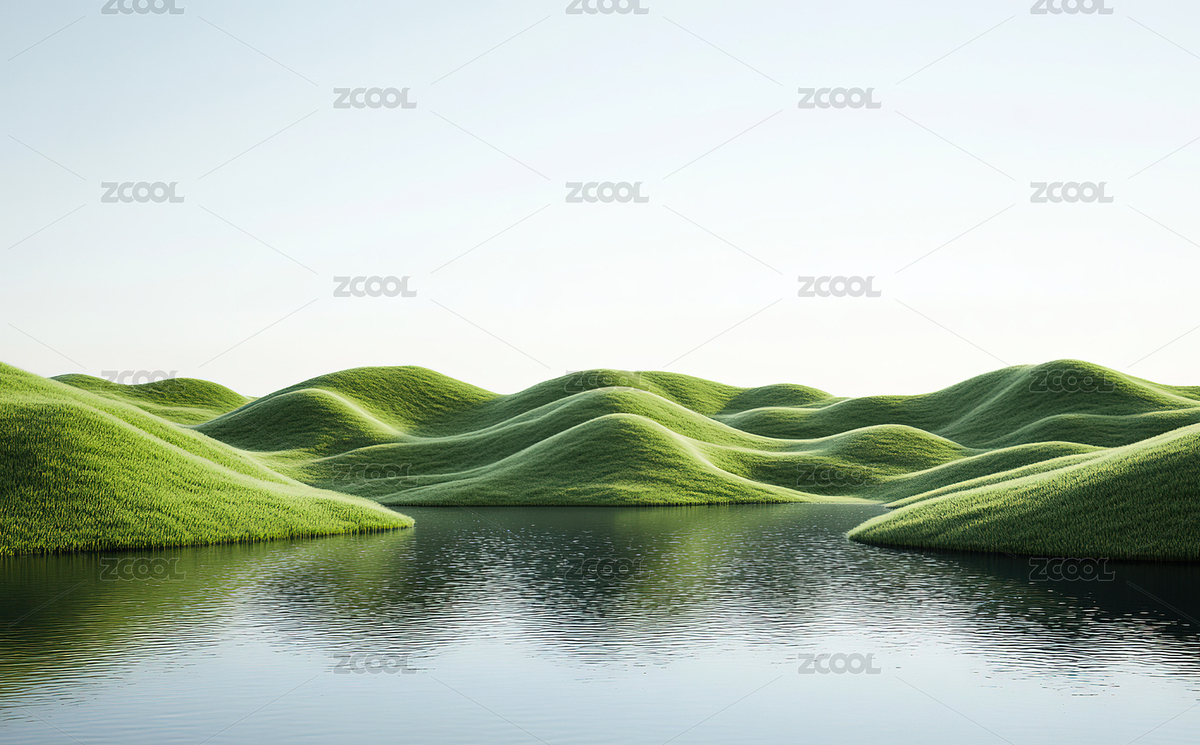 绿色的草地和湖
