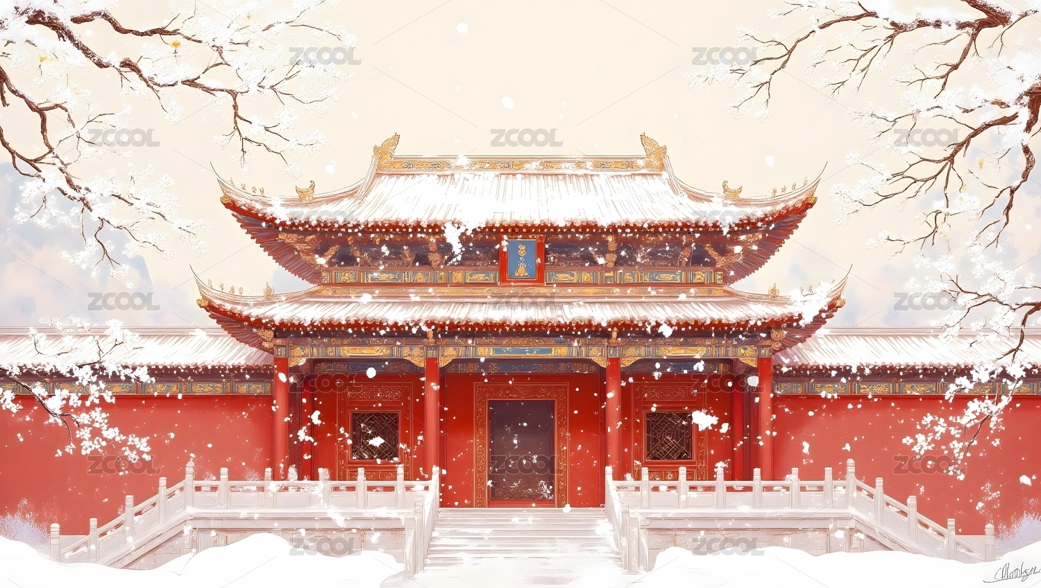 风景,中国风,冬天,雪,下雪,建筑,小雪,大雪,小寒,红墙
