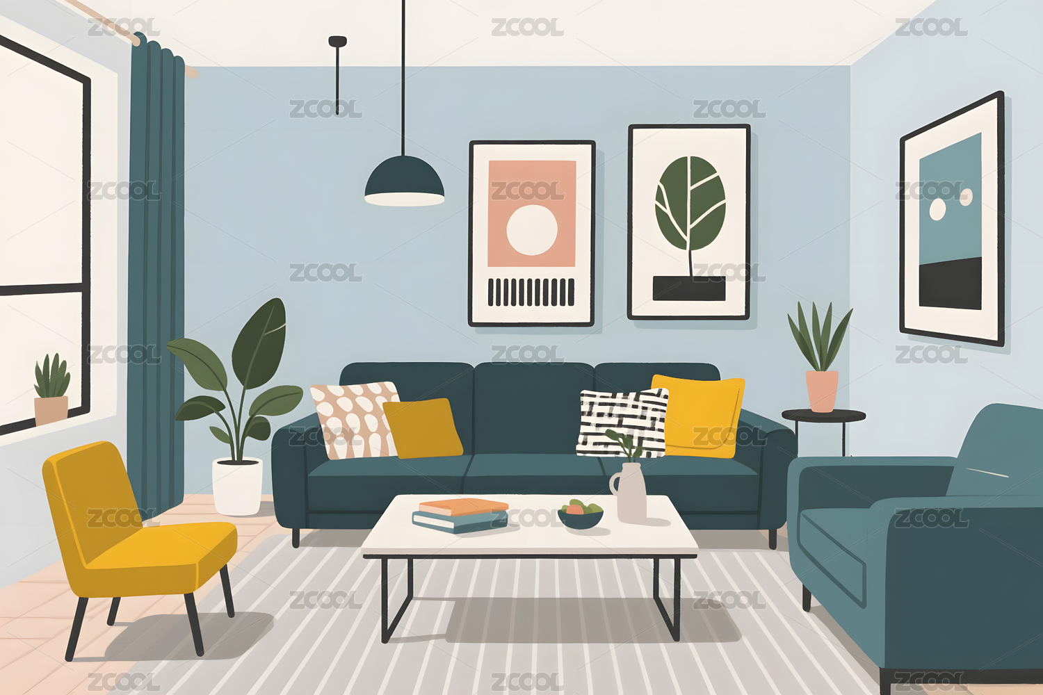 室内客厅沙发居家瑜伽锻炼插画宅家运动海报