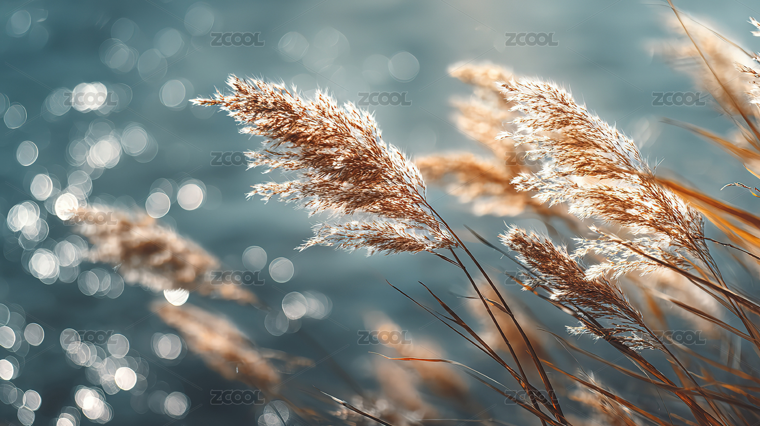 蓝色湖边芦苇海报背景