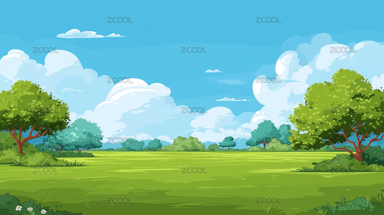 草,夏天,户外,天空,地形,绿色,景象,树,云,草地