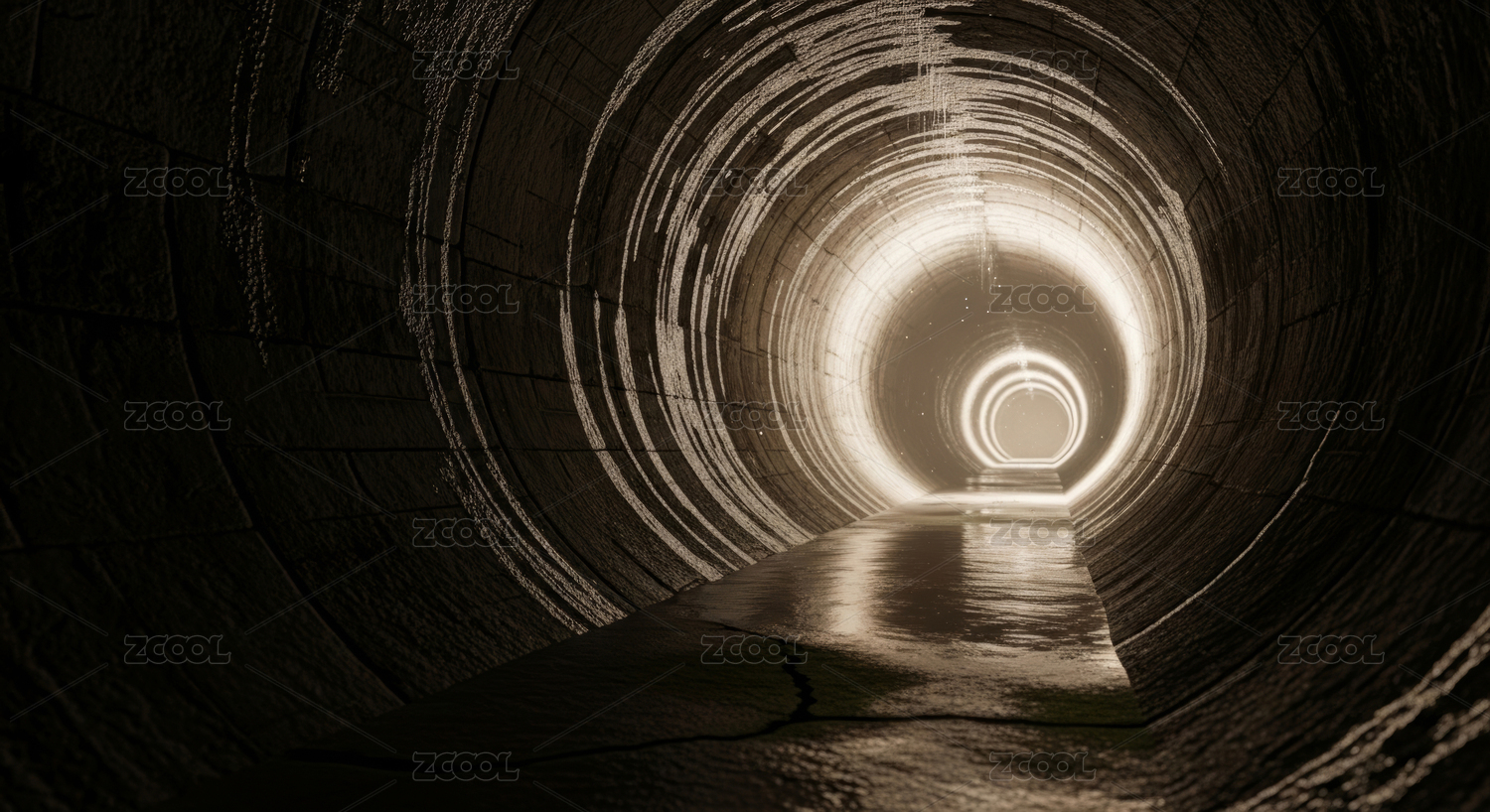 光影交错的螺旋隧道尽头之光