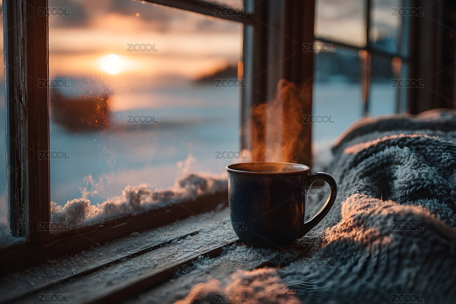 冬日暖阳窗边毛衣热饮温馨时光