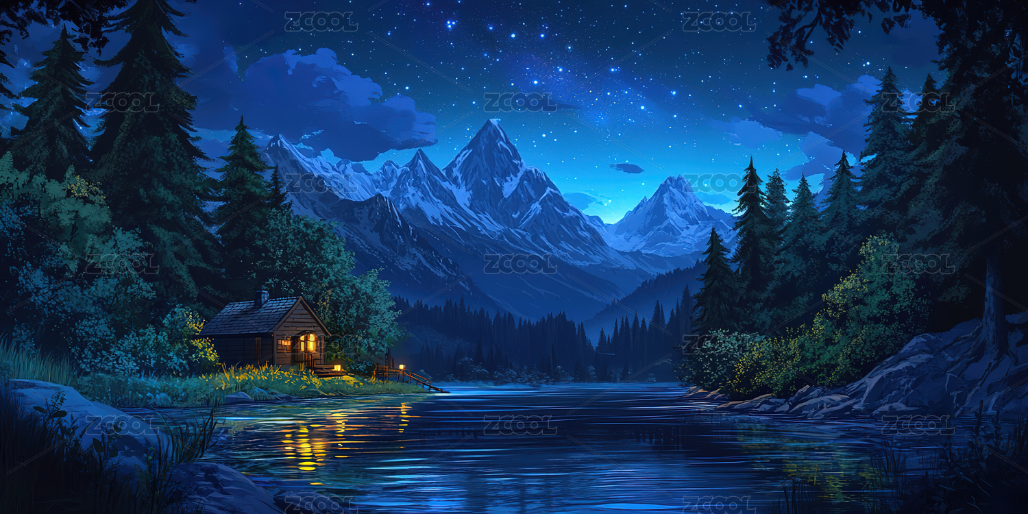 星空下的小屋主题