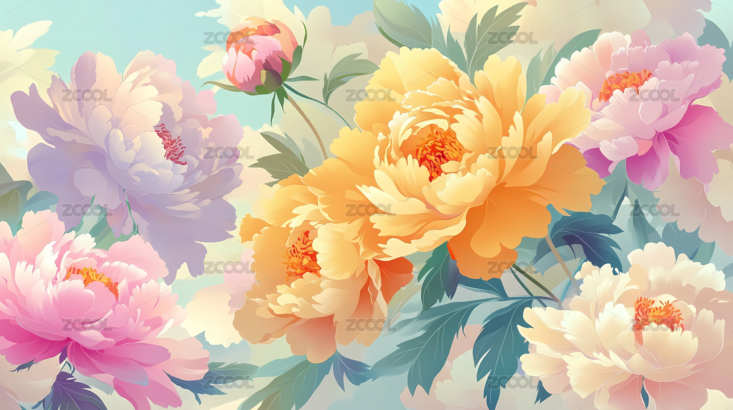 芍药牡丹花背景插画
