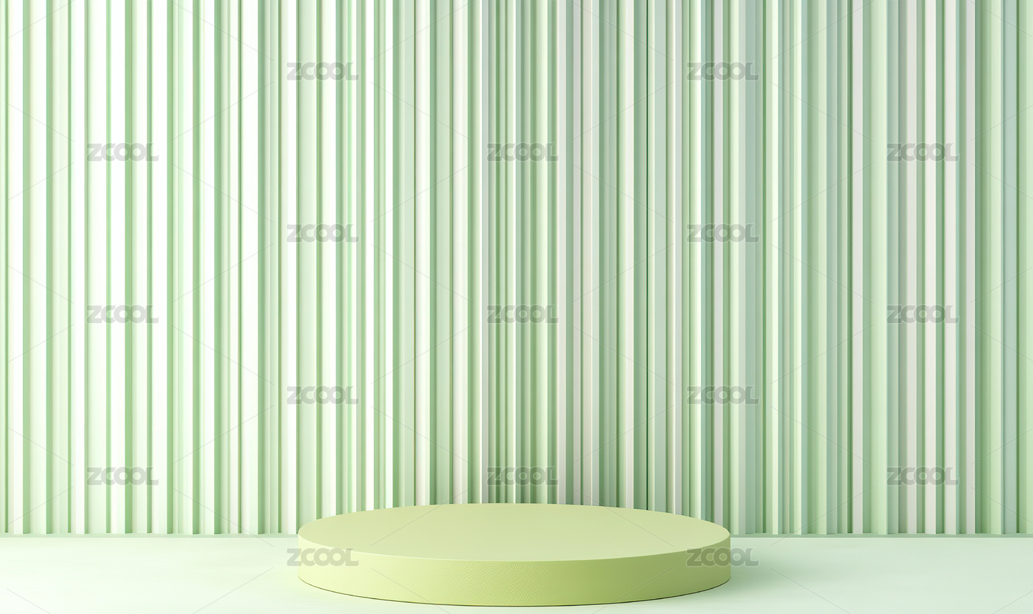 绿色条纹背景的白色圆形台座