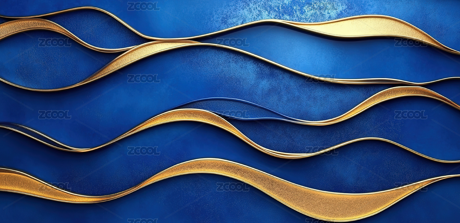 金色线条的蓝色波浪
