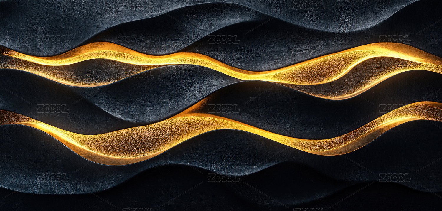 奢华黑金岩石波浪纹理抽象背景