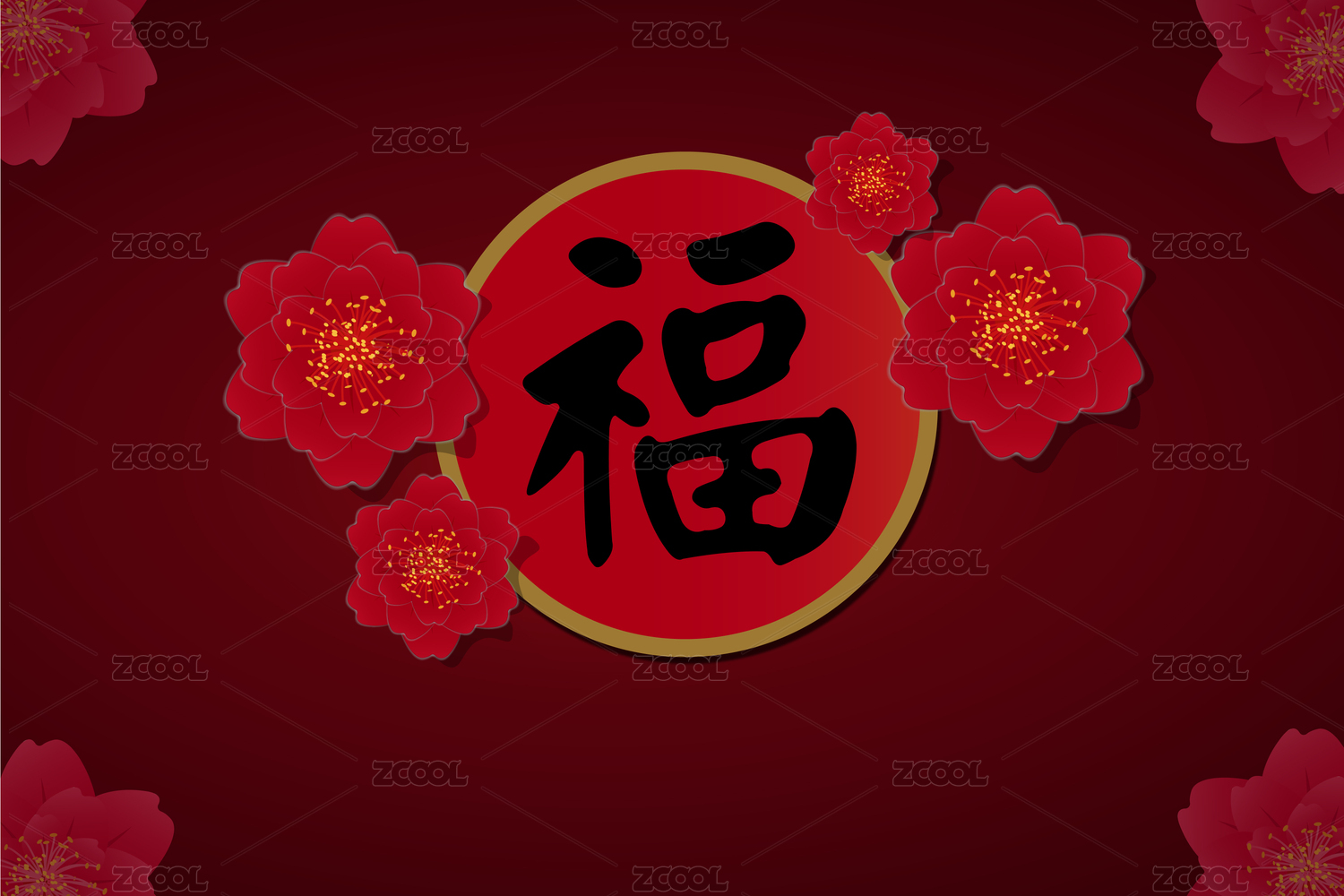矢量图新年梅花福字背景图