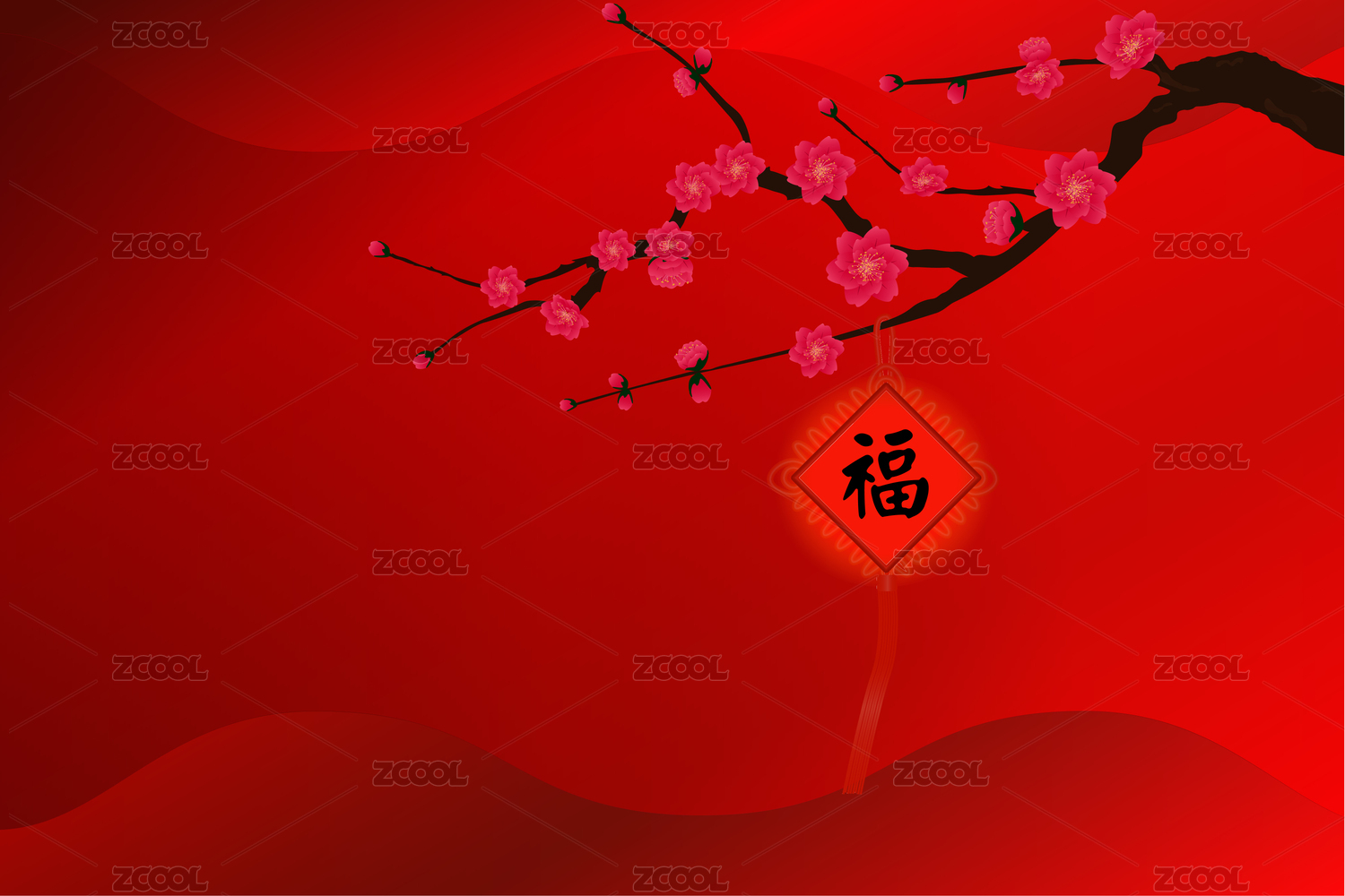 矢量图新年梅花福字中国结背景图