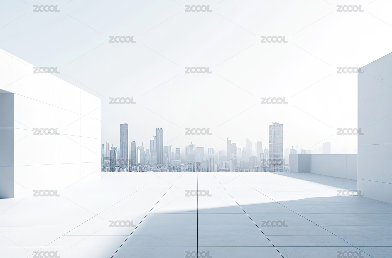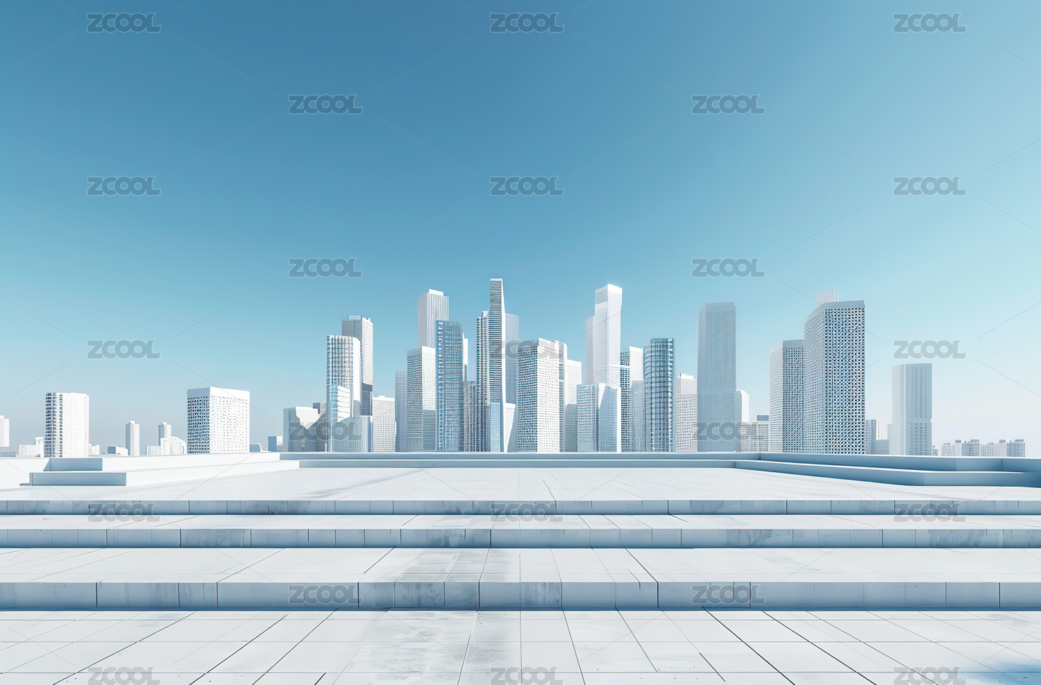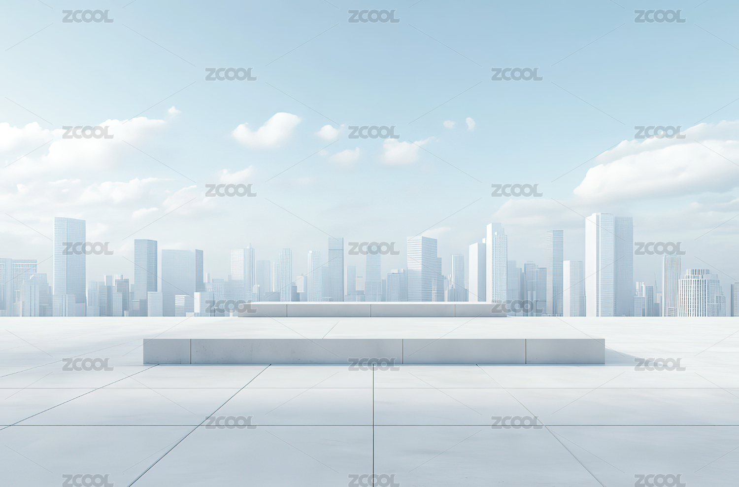城市天际线与广场
