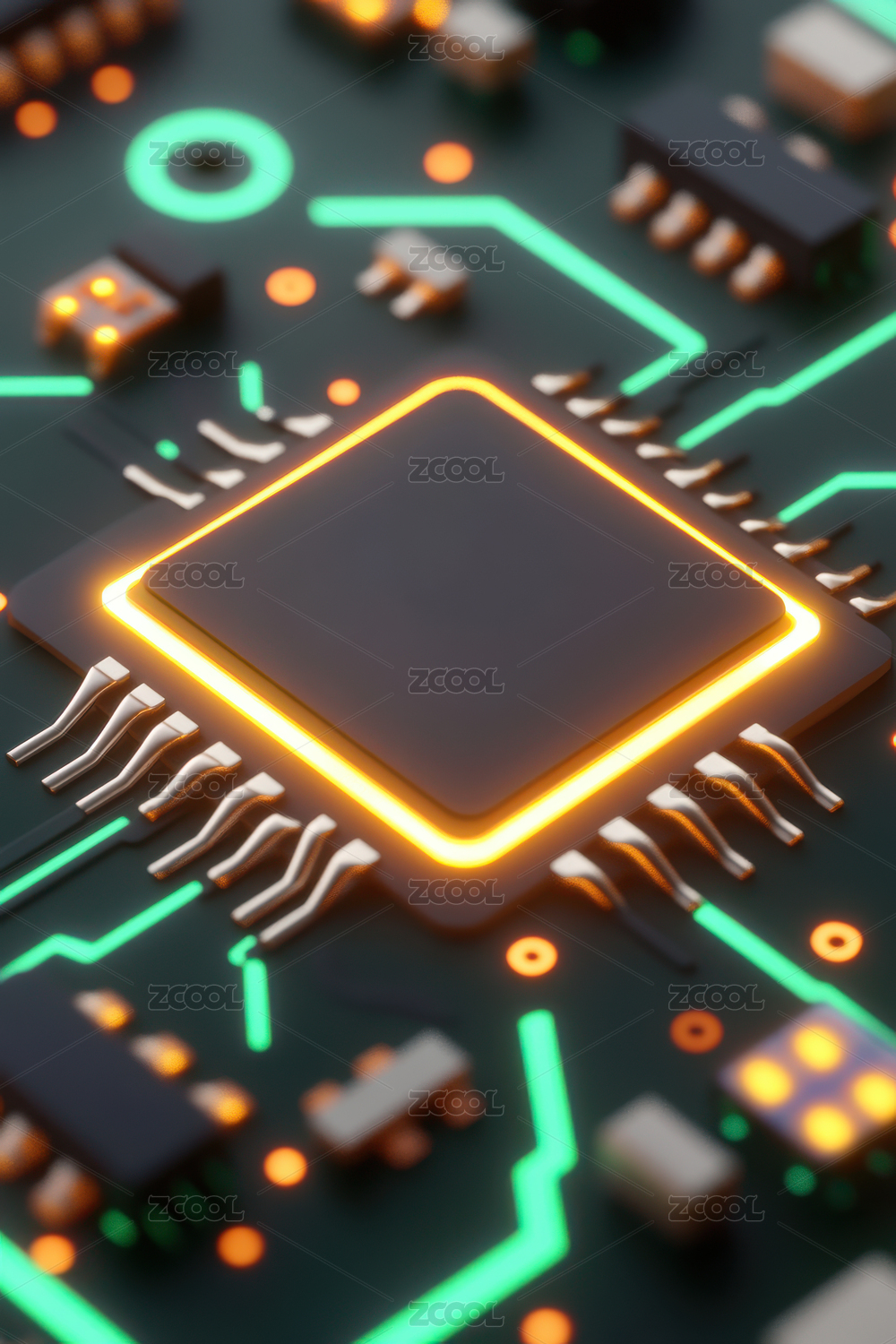 未来科技芯片电路板高清渲染图