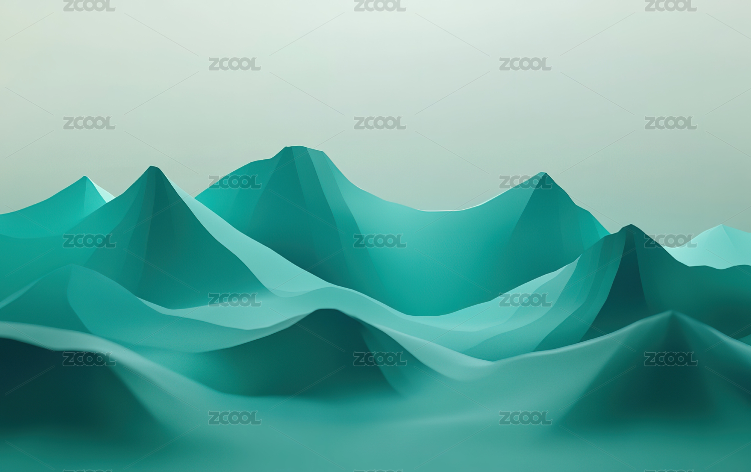 青绿色调的抽象山脉景观图