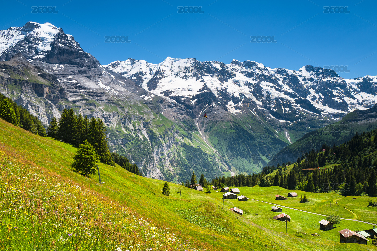 欧洲风景阿尔卑斯山脉瑞士少女峰