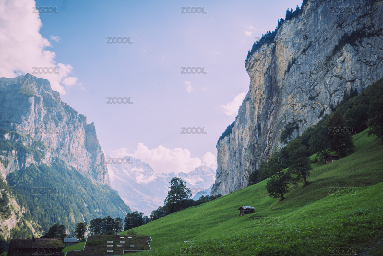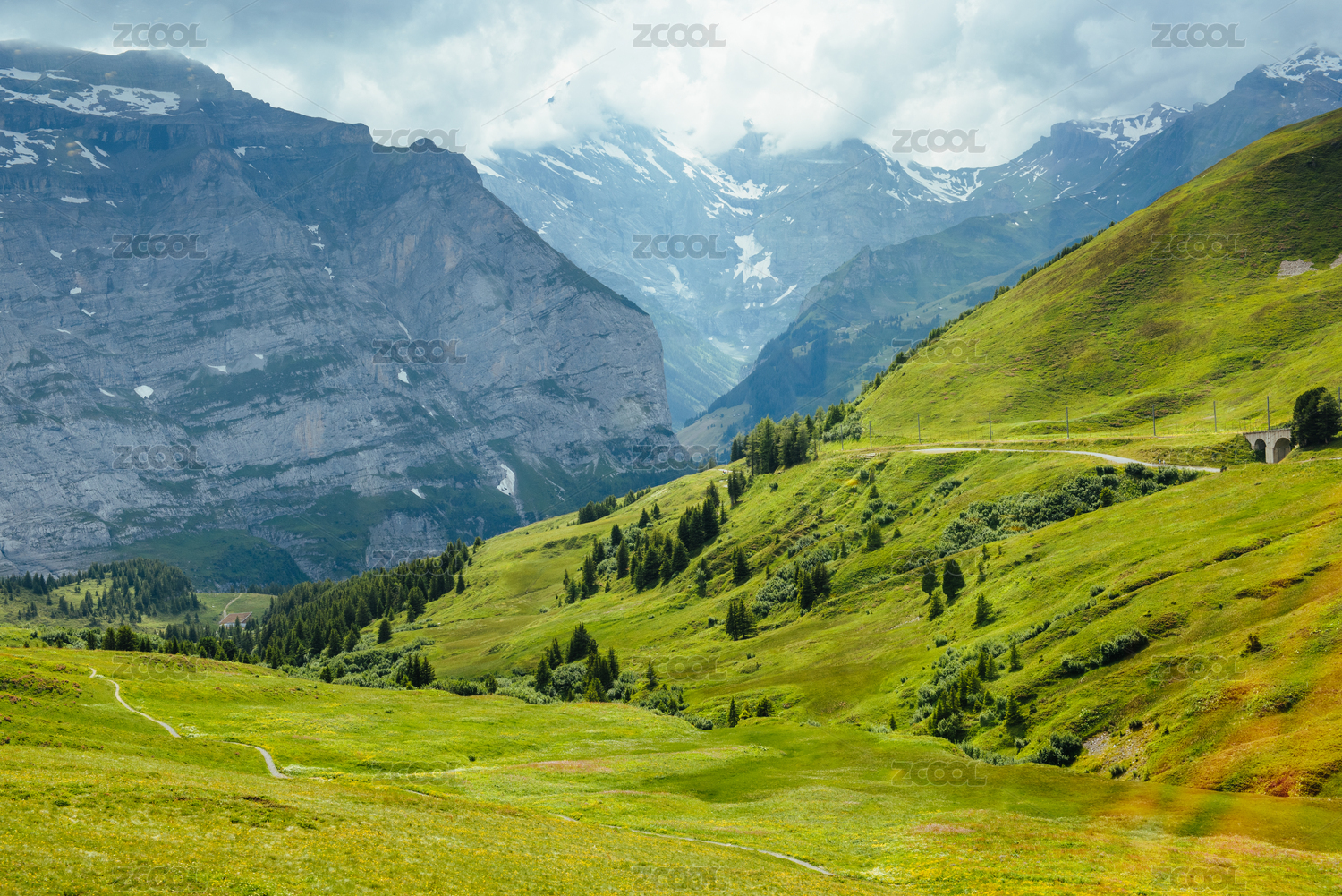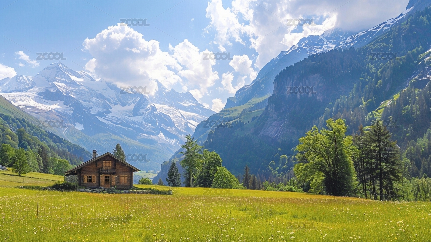 瑞士阿尔卑斯山脉美丽的森林与草地
