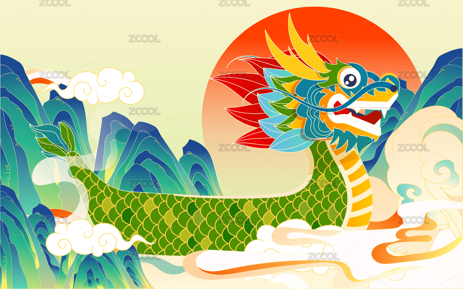 国潮端午节赛龙舟插画传统节日浪花龙船海报
