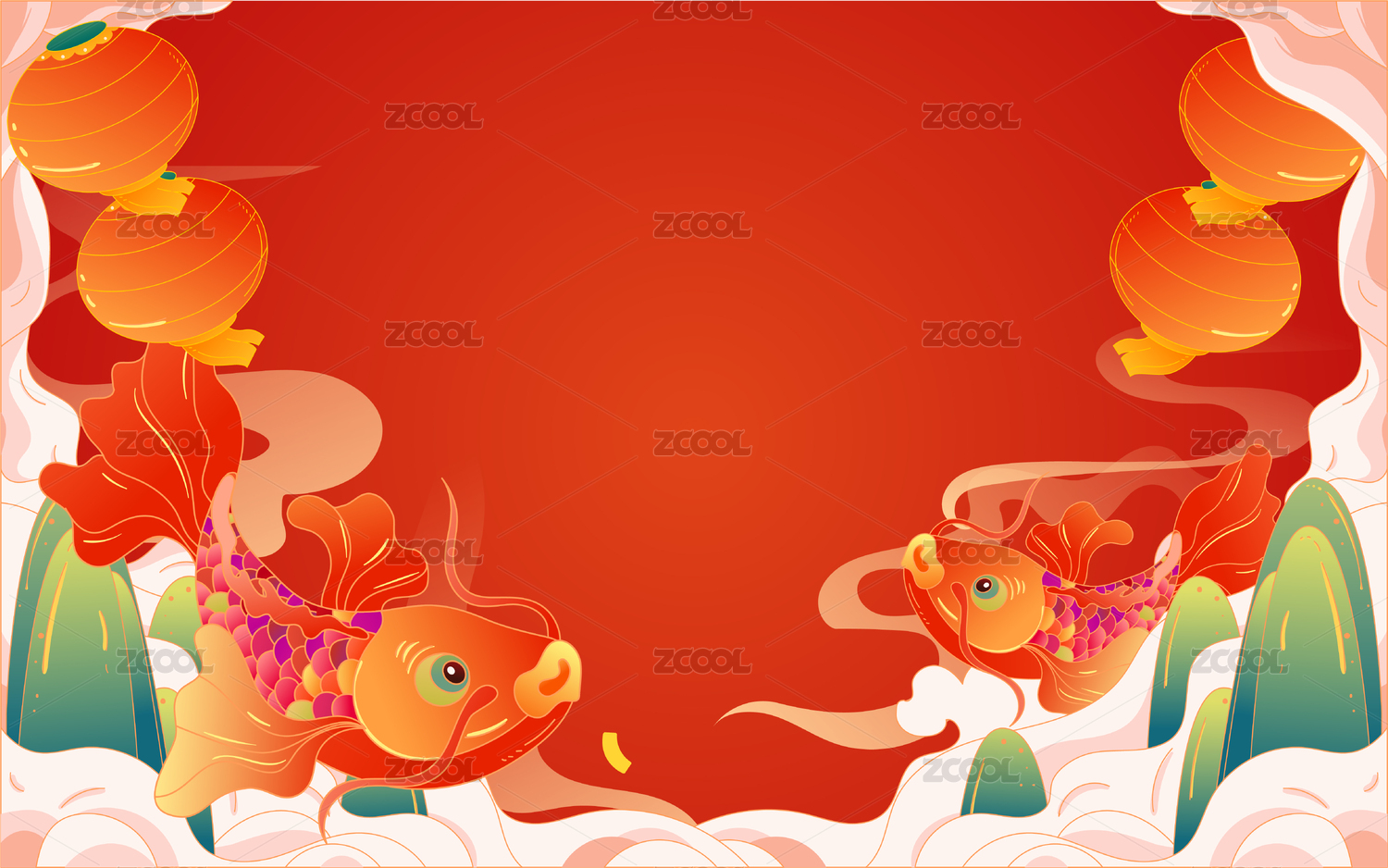 春节红色锦鲤背景新年喜庆国潮节日活动海报