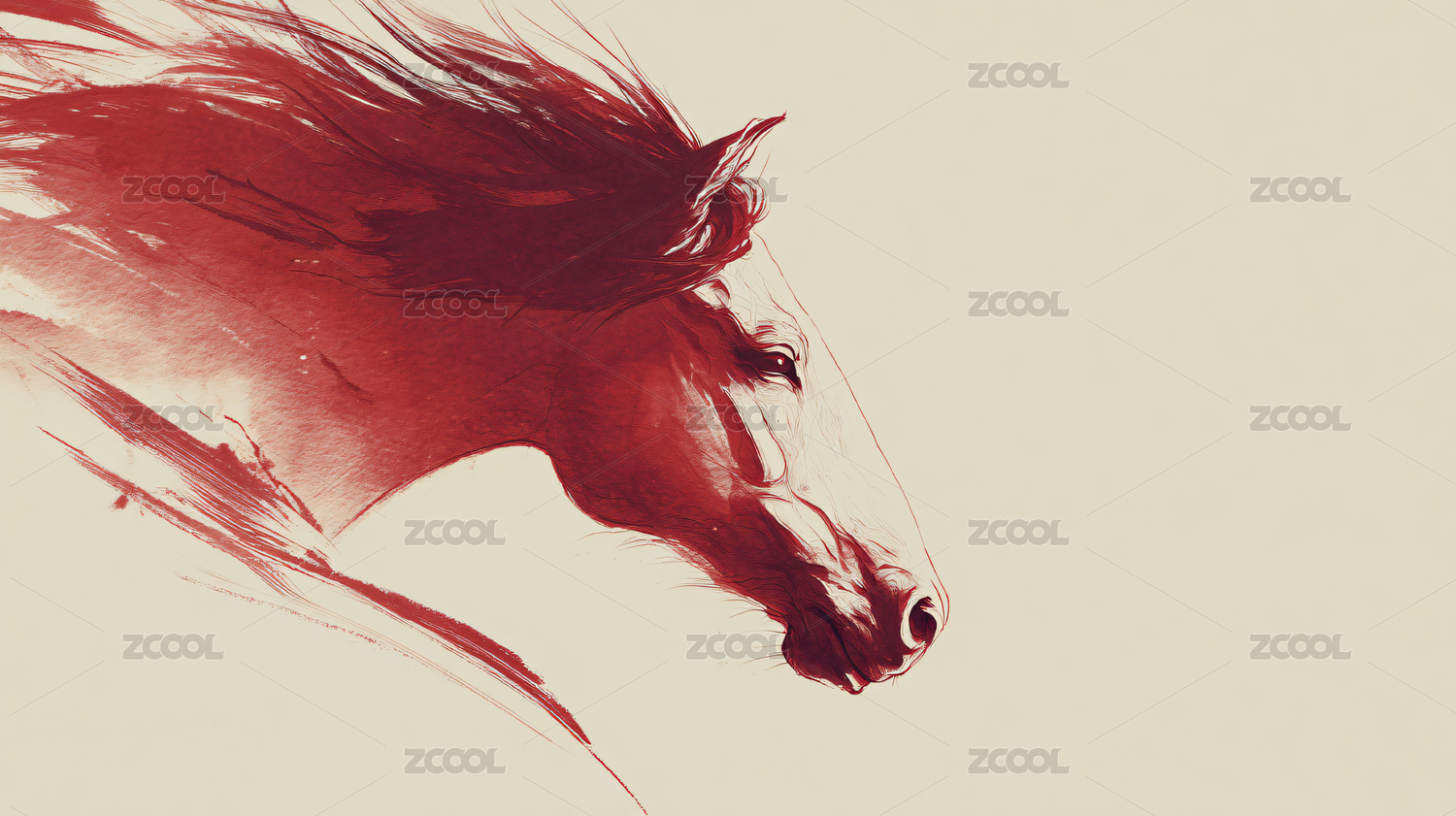 插画,传统,东方,动物,概念,绘画,马,年份,设计,书法