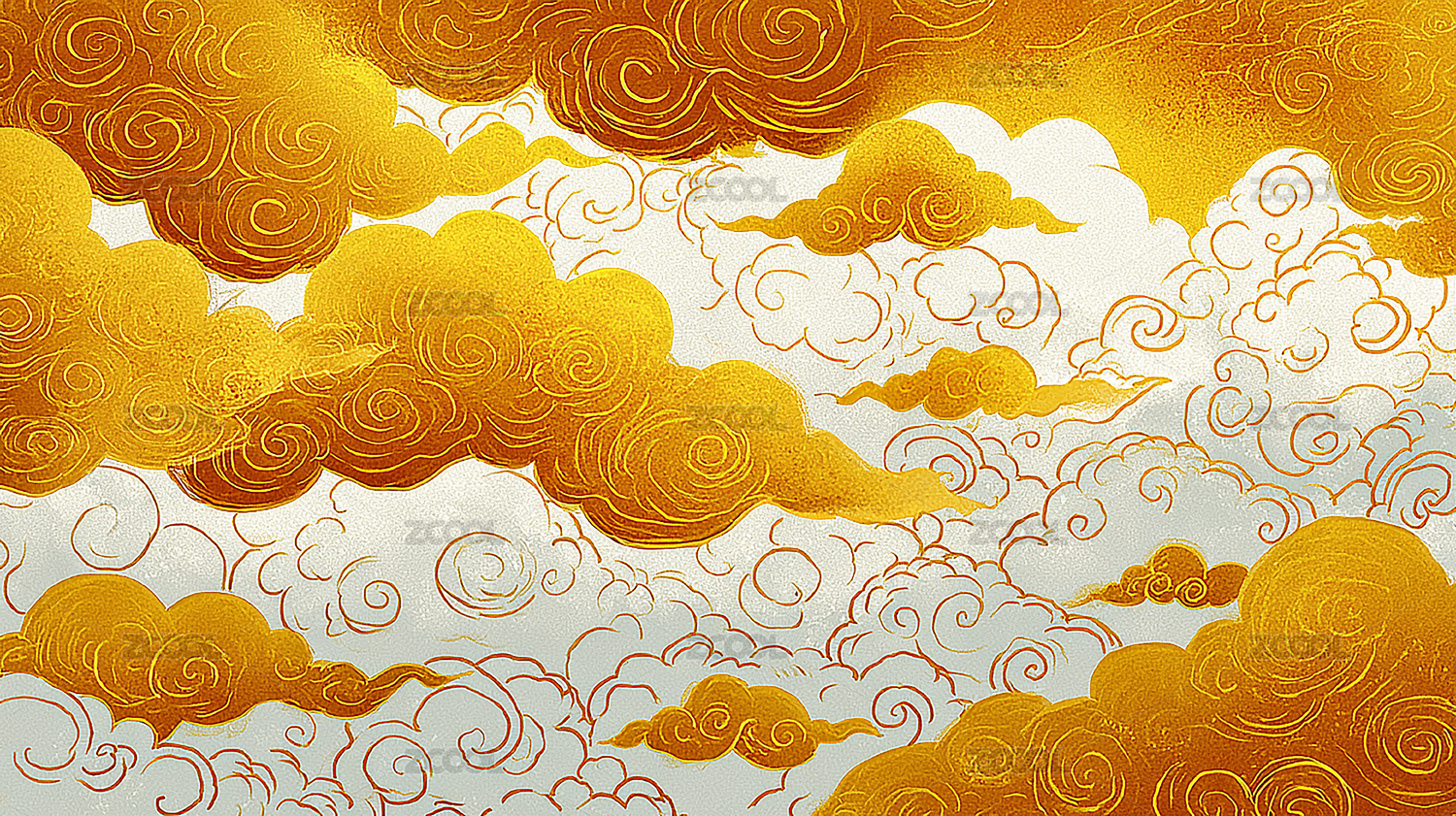 金色,祥云,背景,节日,春节,插画,新年,海报,传统,中国