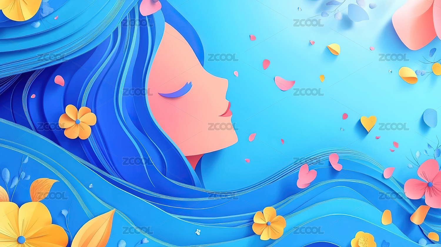 妇女节女性妇女剪纸风格插画,抽象的女性剪