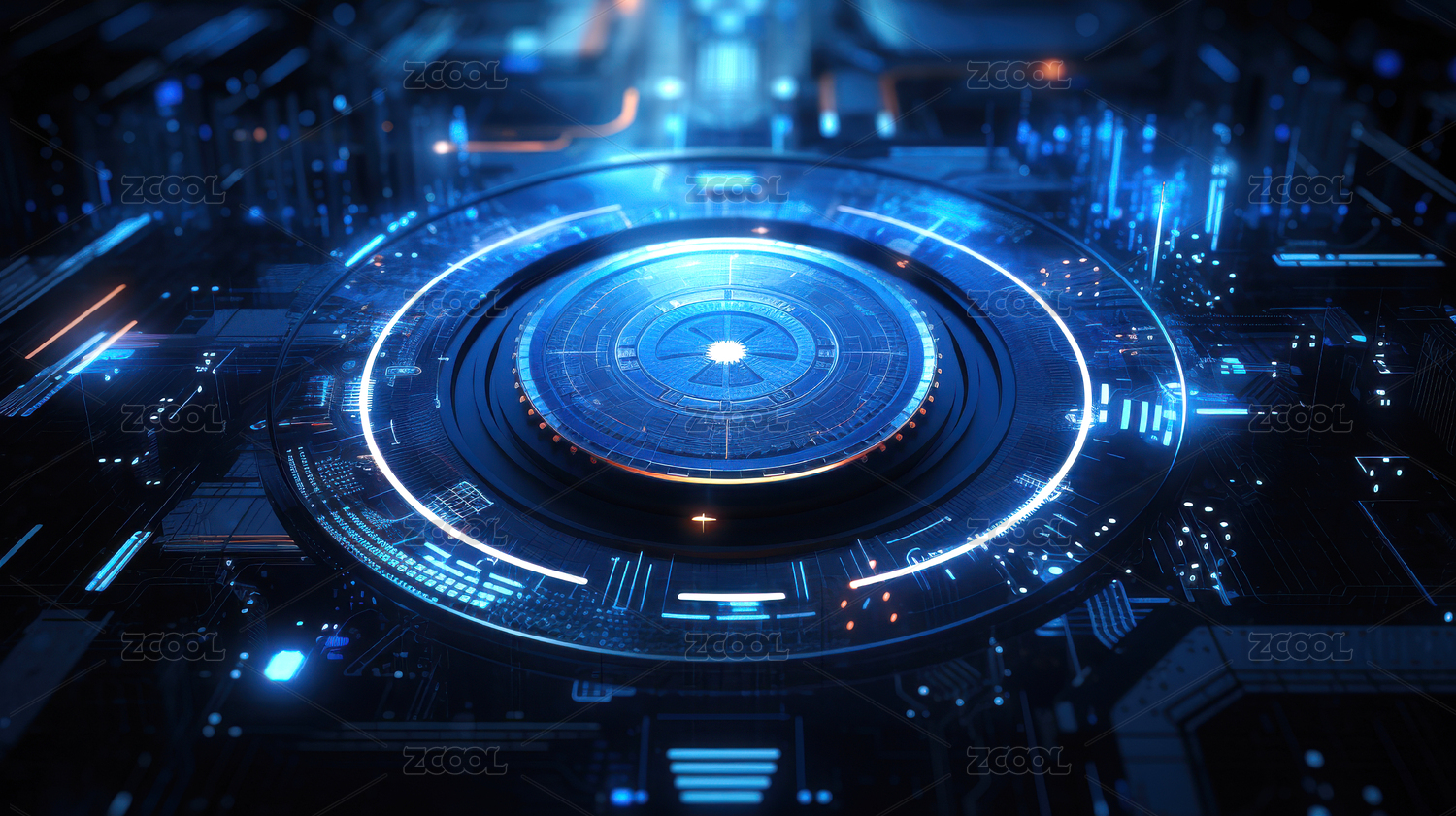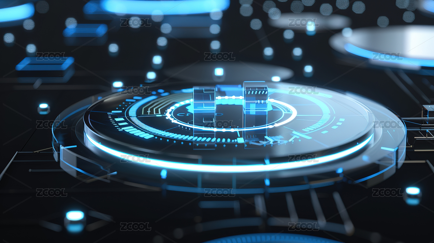 未来科技感环形光效HUD蓝色科技圆环背景