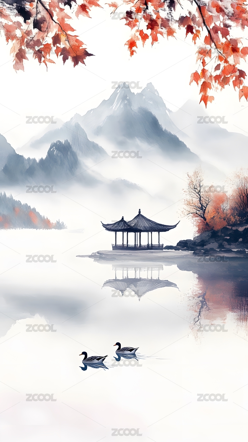 中国,插画,装饰,设计,风格,背景,历史,水墨,水彩,古典